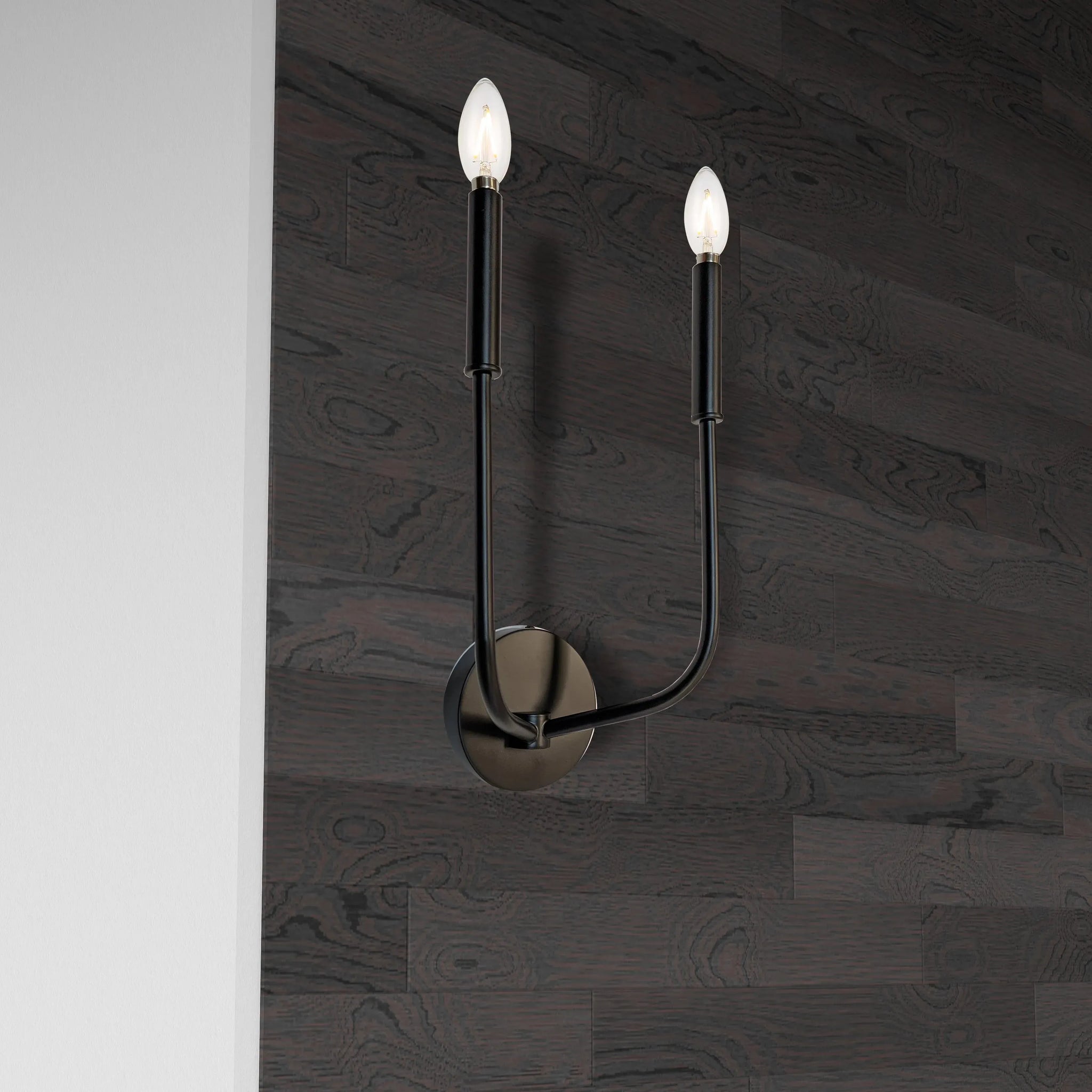 Designed for refined interiors, the Eleanor Wall Sconce balances minimalist form with purposeful presence. Its slender, U-shaped arms rise from a compact round backplate to present two exposed candelabra-style lights, creating an elegant vertical silhouette perfect for corridors, bedside lighting, or layered ambient schemes.