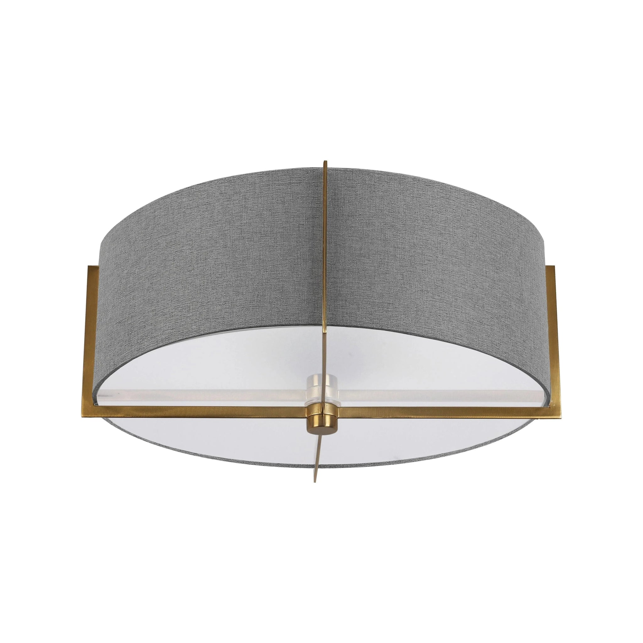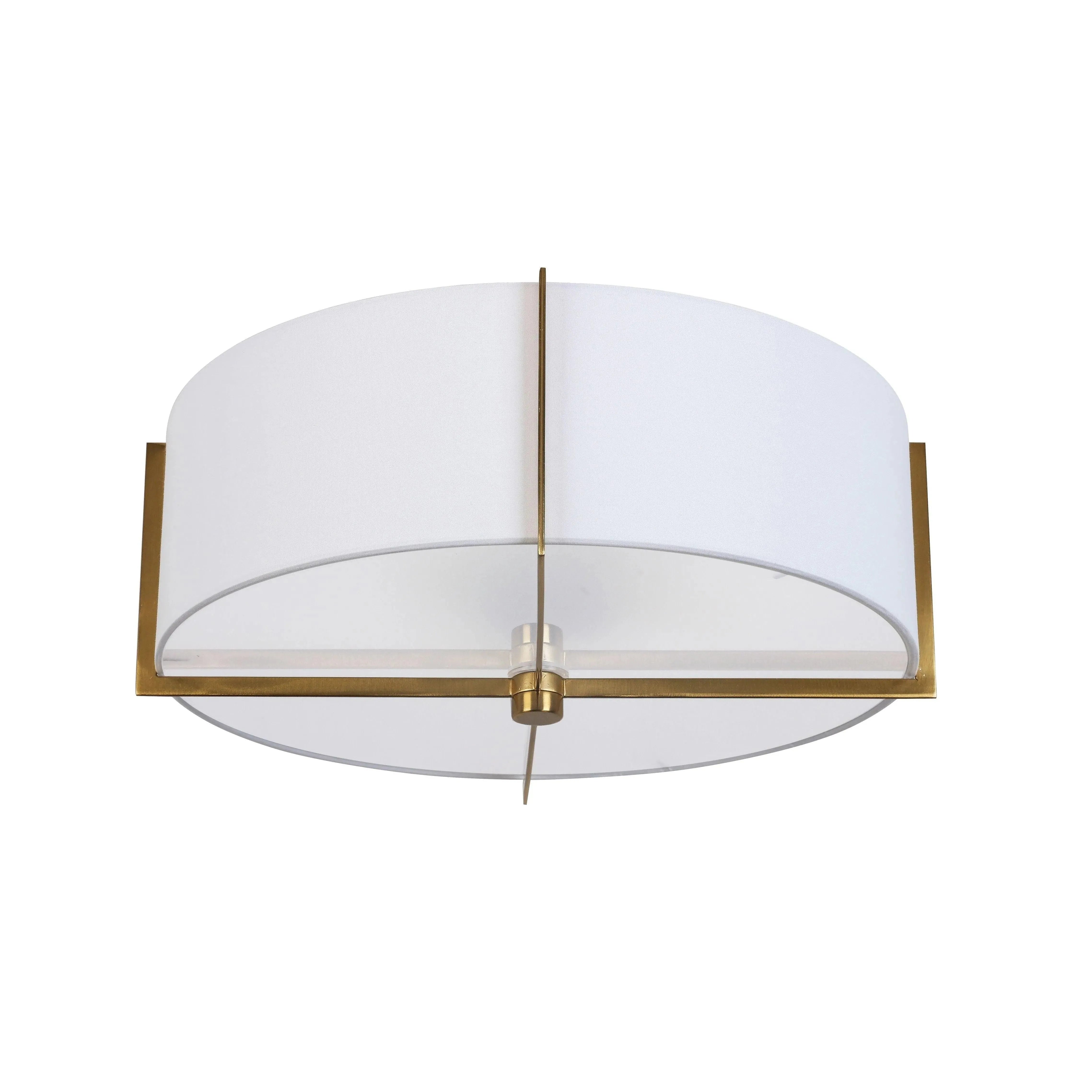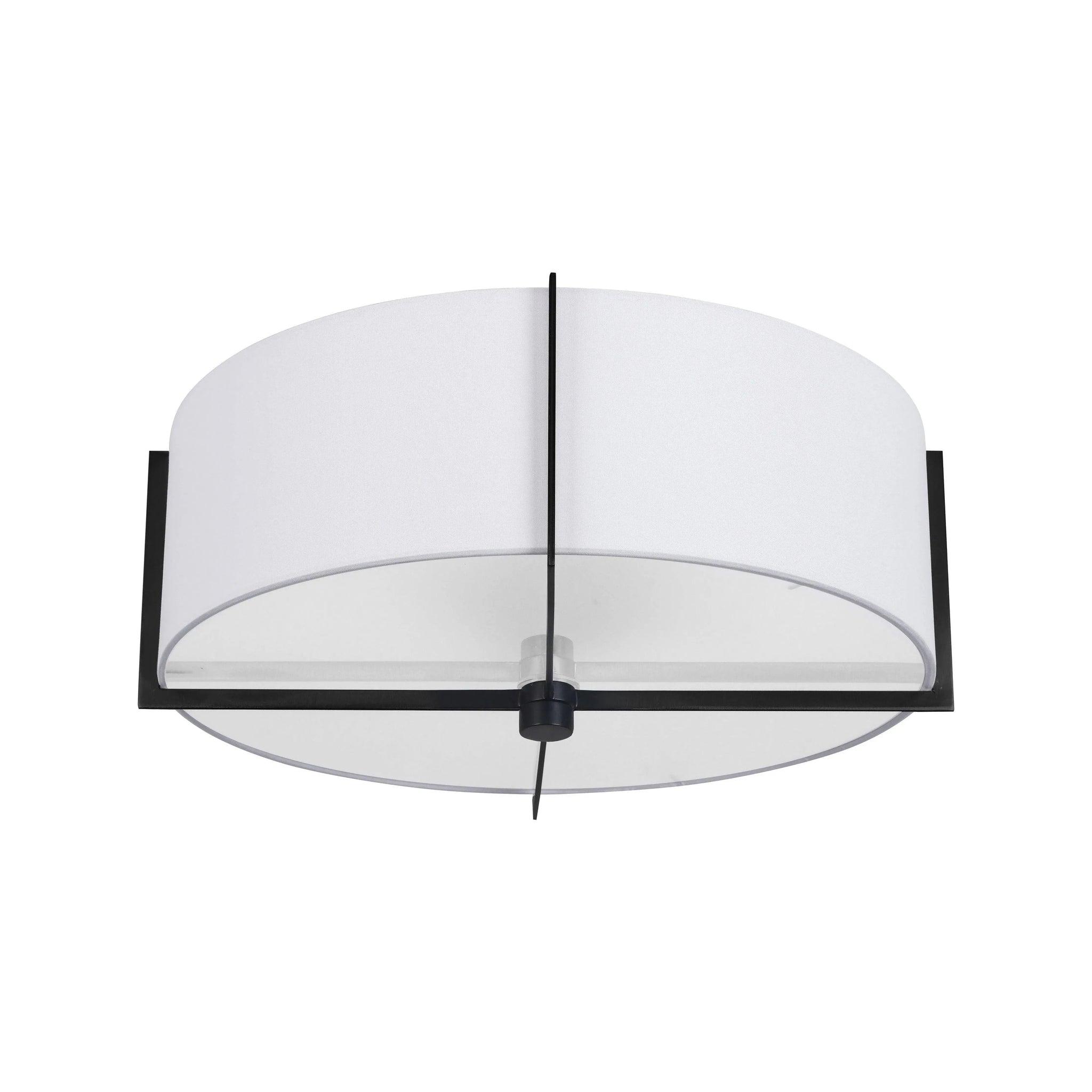 Preston Semi-Flush Mount from Dainolite balances sculptural form with restrained luxury — a designer lighting piece that elevates entryways, corridors, and layered living spaces. The crisp drum silhouette pairs a textured black fabric shade with a slim, warm-brass frame and crossbar, creating a precise, architectural profile.