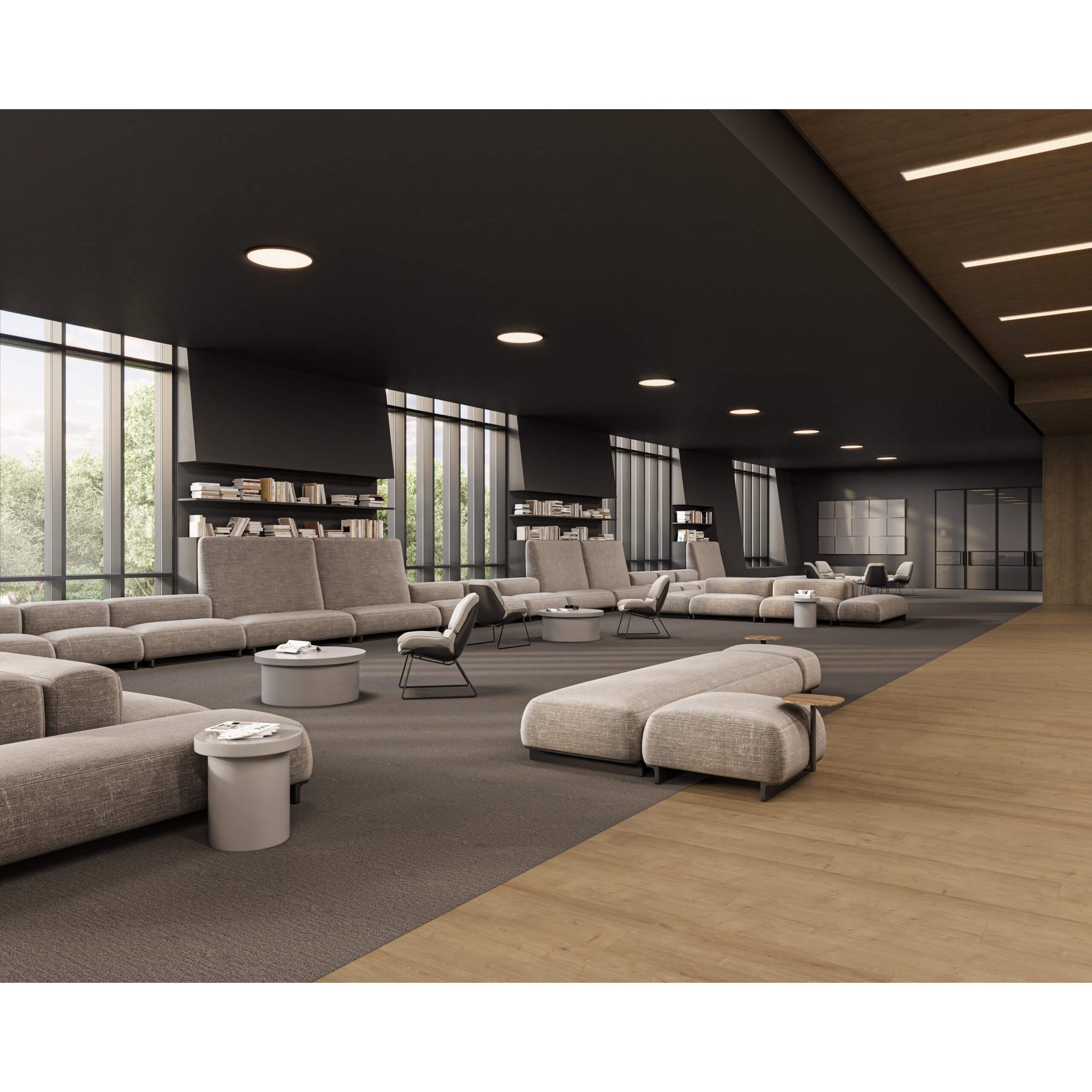 • Uniform edge‑lit diffuser for soft, architectural light