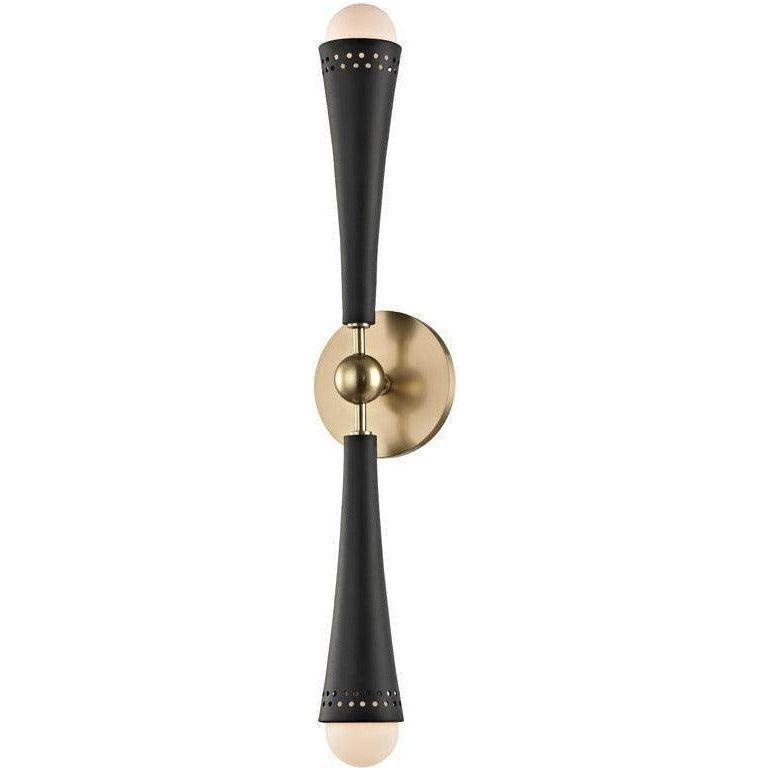 Tupelo Wall Sconce — a study in refined geometry and purposeful restraint from Hudson Valley Lighting. The slender, tapered arm creates a vertical focal point while a warm brass backplate and spherical joint add thoughtful contrast, making this sconce a quiet statement for curated interiors.