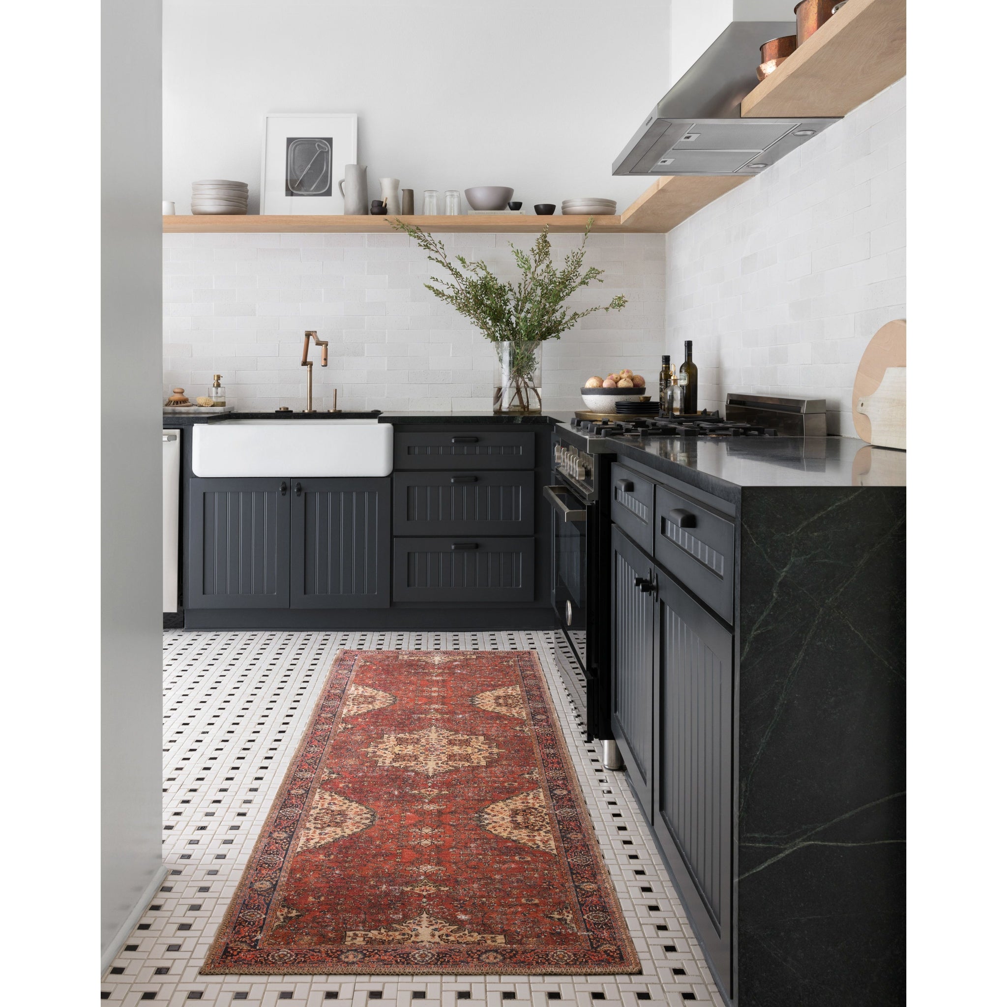 Loren Lq 07 Red Navy, a timeless and classic addition to any space. This rug from the Loren Collection brings vintage hand-knotted aesthetics within reach at a wallet-friendly price point. Crafted in Turkey with cutting-edge rug-making techniques, these printed designs deliver a textured look that beautifully showcases each individual knot on a plush polyester base.