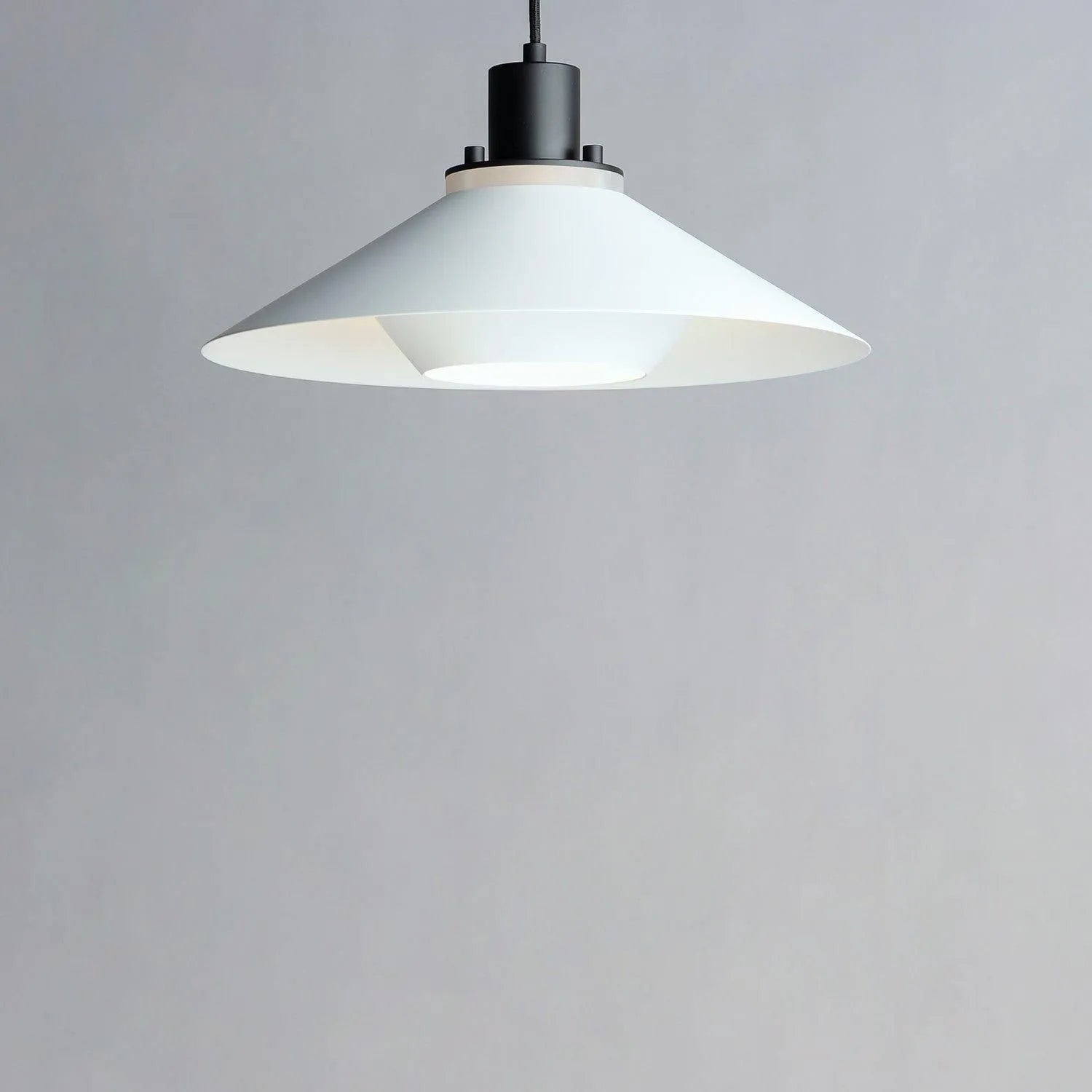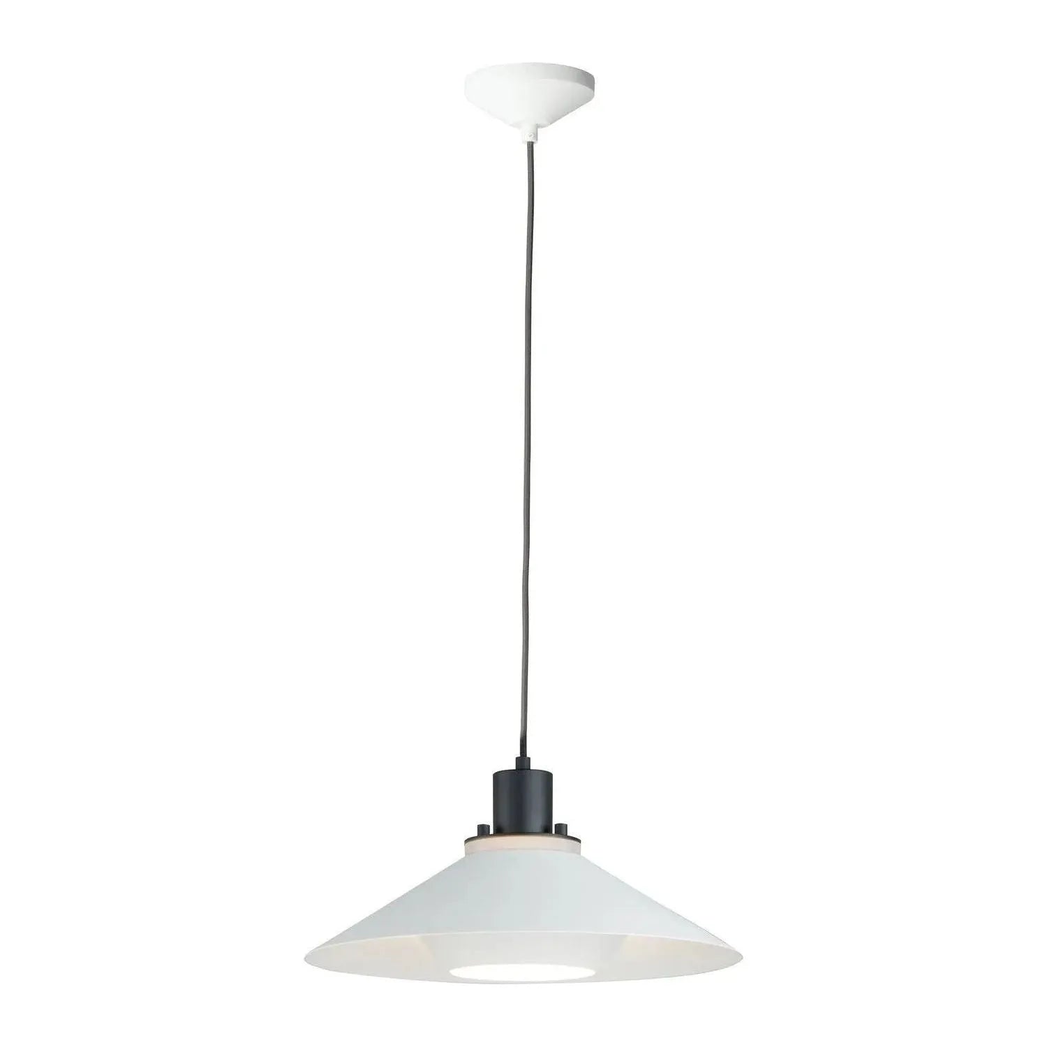 Influenced by early modern Scandinavian design, the Oslo pendants feature a light reveal above the shade as well as an inner shade that reduces glare and creates an interesting lighting effect. Finished in a combination of Matte White shades with Matte Black tops, this design coordinates with any color in a space. Available in 3 sizes, these pendants fit over various size counters as well as smaller dining areas.