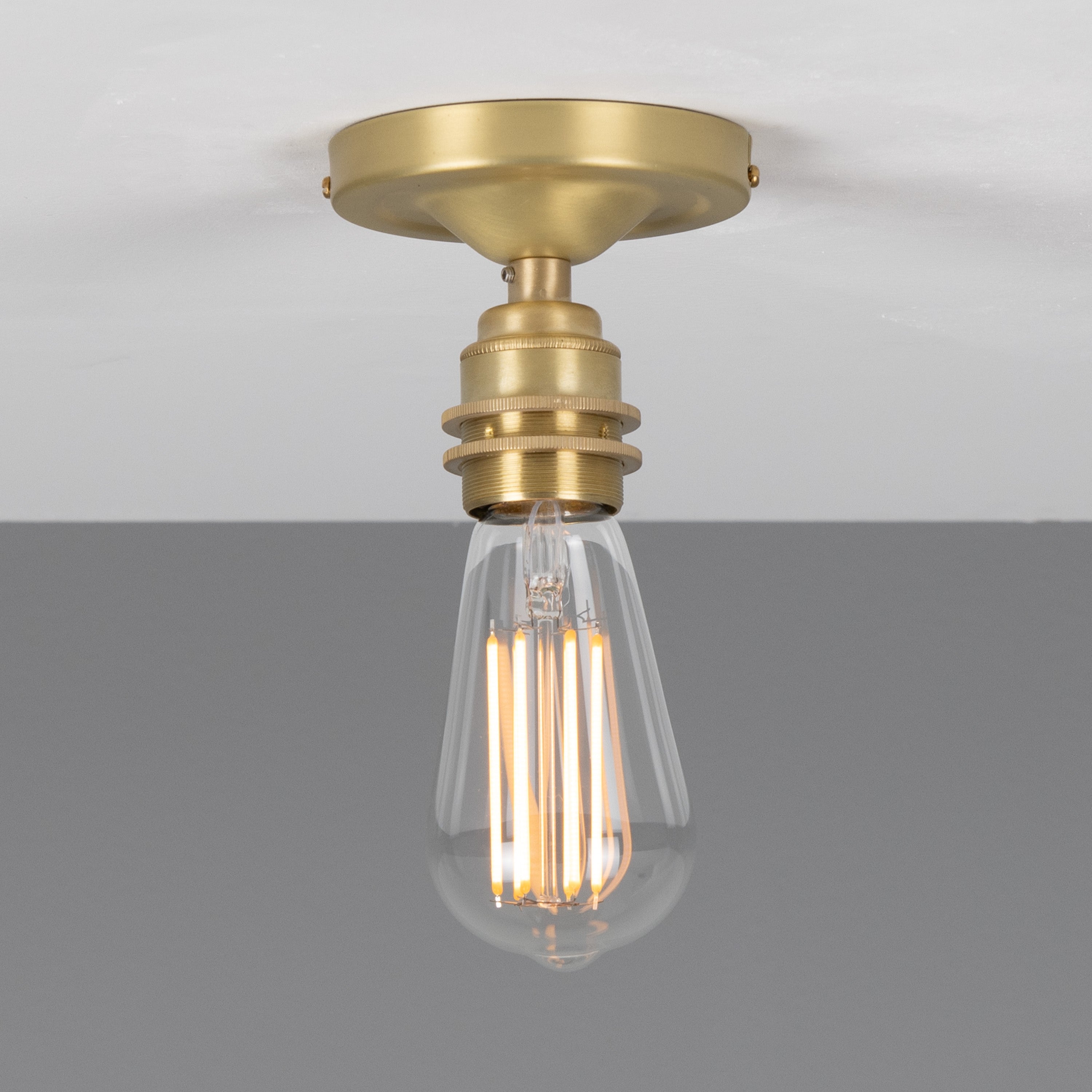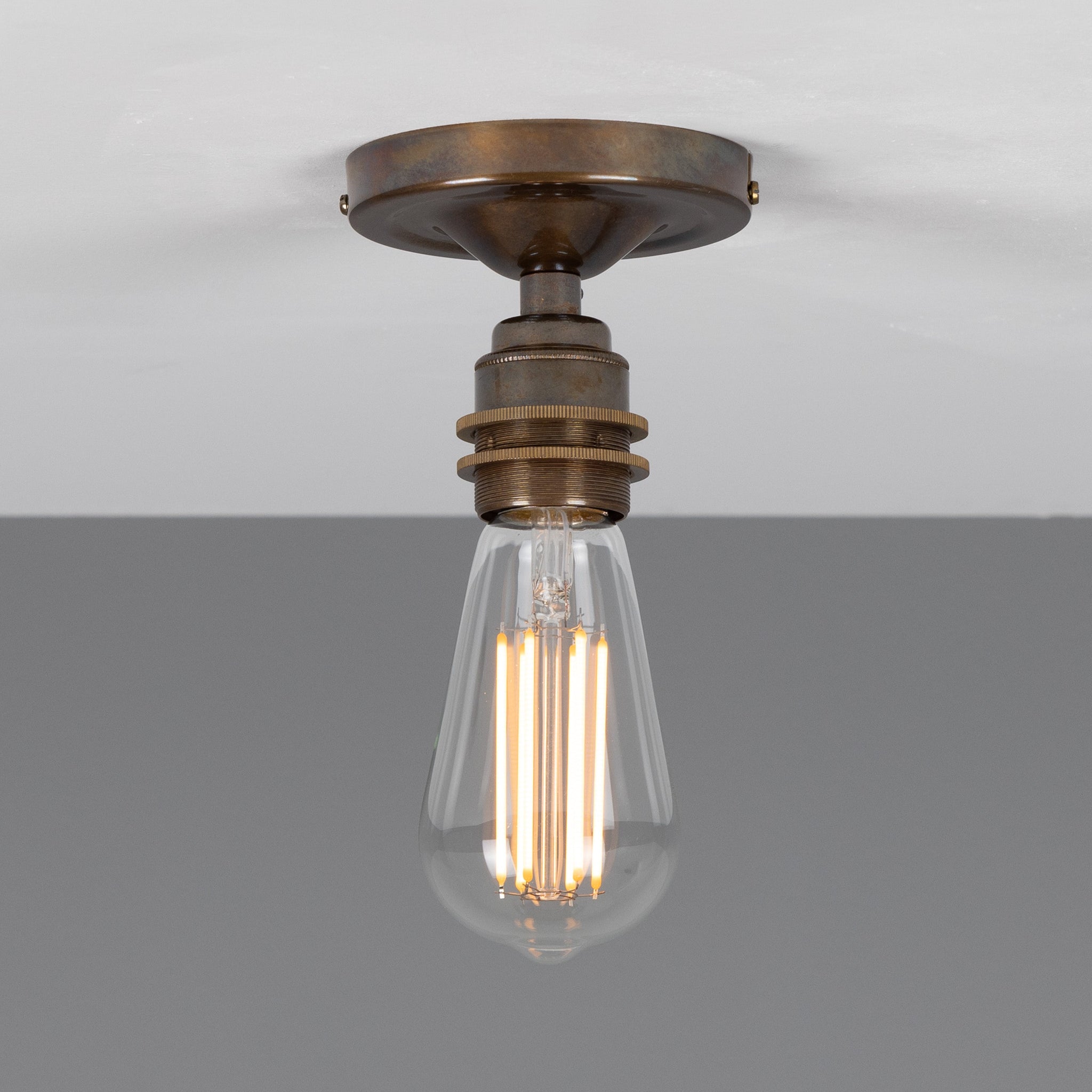 Bexter Vintage Flush Mount by Mullan Lighting is a considered choice for designers seeking industrial restraint and mechanical detail in a compact ceiling fixture. The low-profile rose and ridged brass lamp holder present a refined, vintage-inspired silhouette that reads modern and timeless.