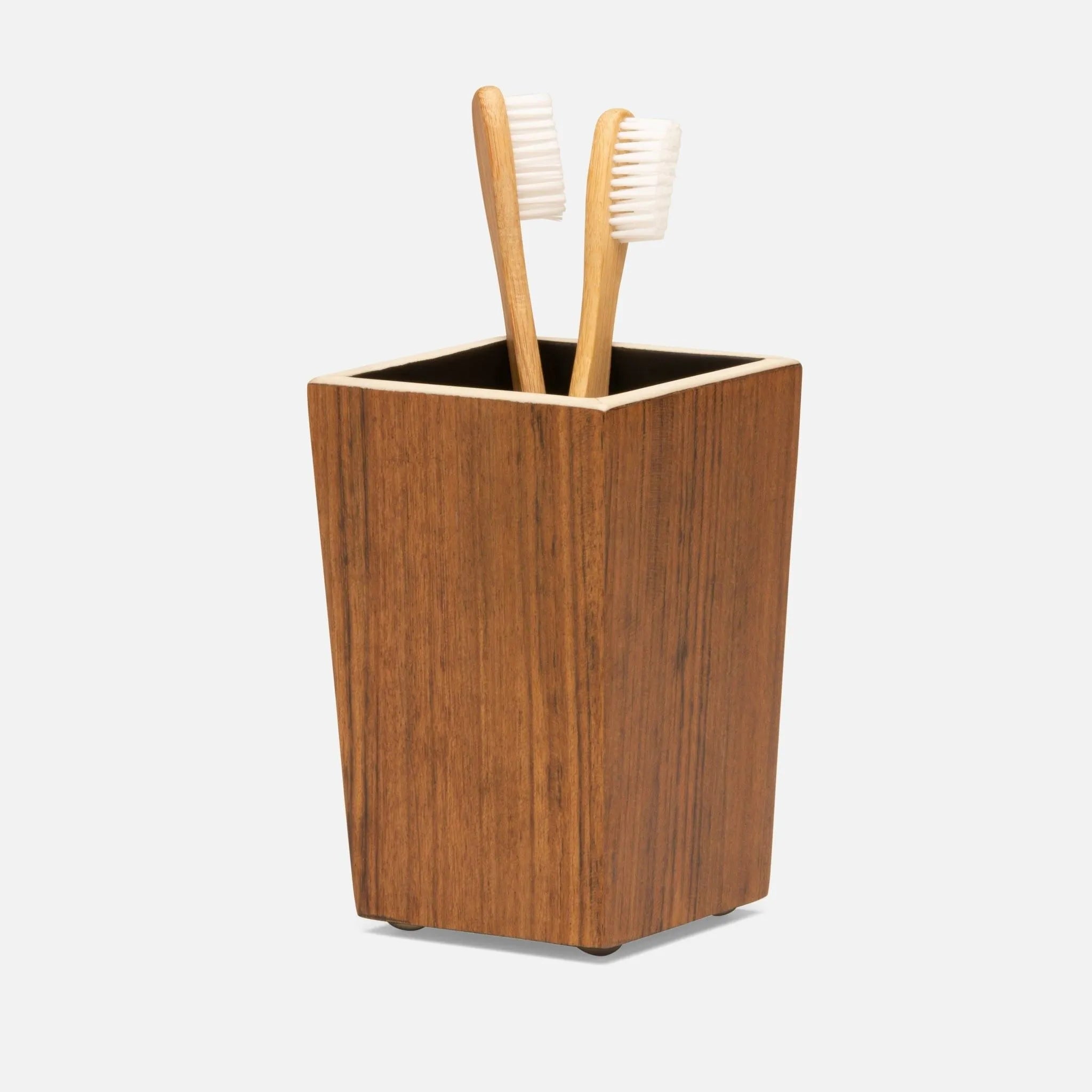 Sophisticated and handsome, a bath collection with elegant details like visible dark grain and a trim of rich-looking faux bone.