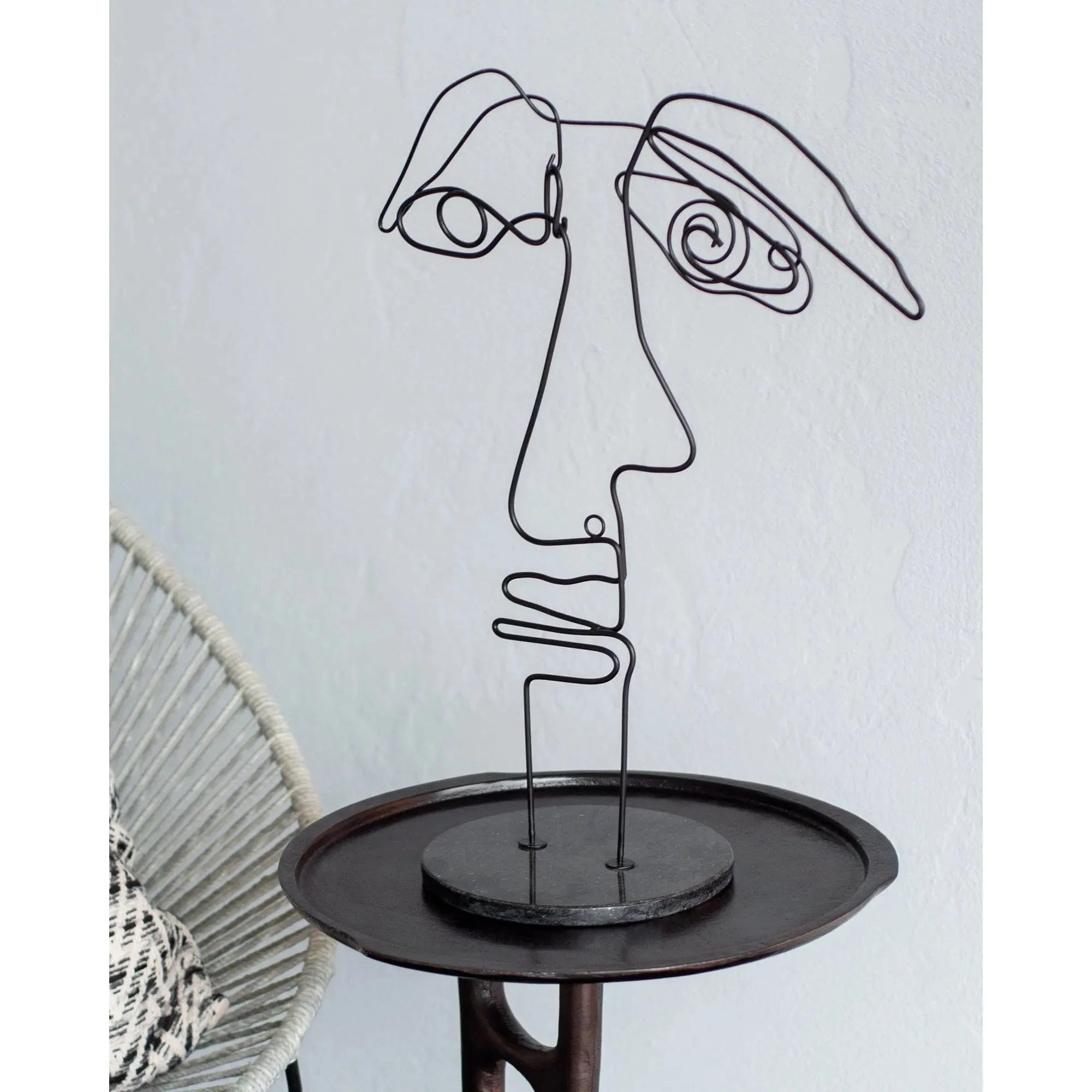 Abstract design takes the spotlight in this unique statue. Set in a modern home it brings a playful quality to the interior, while also adding a sense of dimension. Composed of powder-coated iron and natural marble, it stands at 18 inches in height.