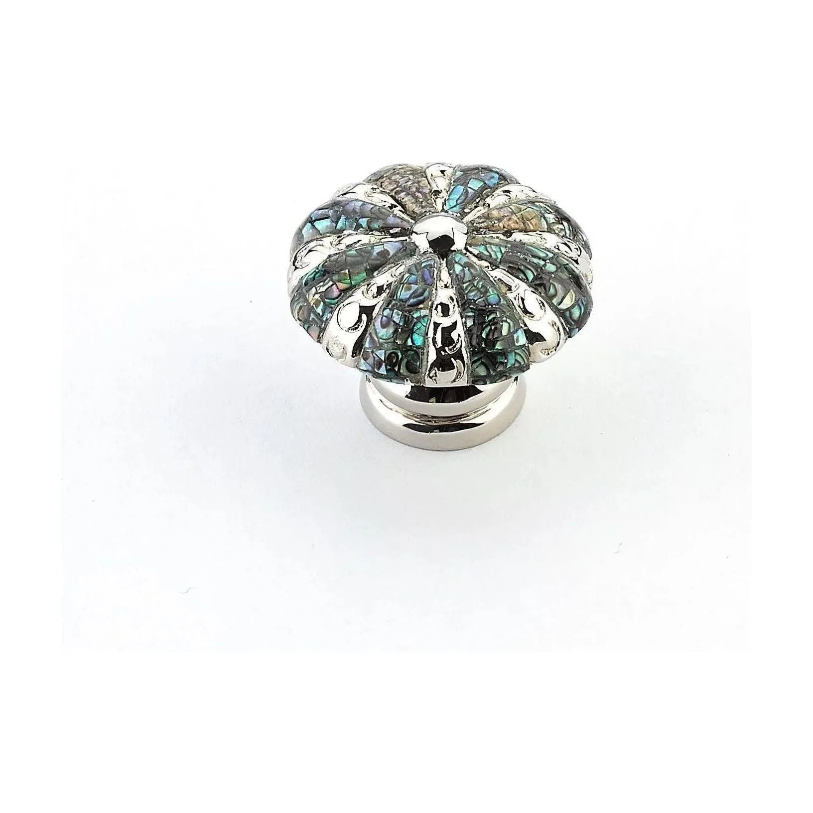 • Artful inlay: Hand‑finished iridescent shell (abalone/imperial shell style) set within raised, scalloped metal ribs for depth and visual texture.