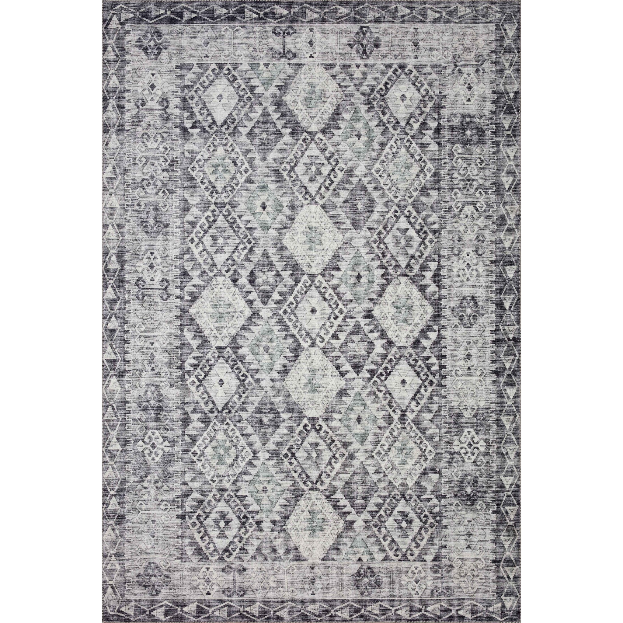 stunning Zion Zio 03 Charcoal Slate rug from the Zion Collection. Drawing inspiration from vintage Turkish and Persian kilims infused with a touch of southwest charm, this rug offers a unique and stylish addition to any space. Crafted with a durable 100% polyester pile, these intricate printed designs exude the elegance of high-end rugs without the hefty price tag. The low-pile construction ensures a plush feel underfoot while also making it effortless to maintain with regular vacuuming. Elevate your home decor with the timeless beauty and affordability of the Zion Zio 03 Charcoal Slate rug.