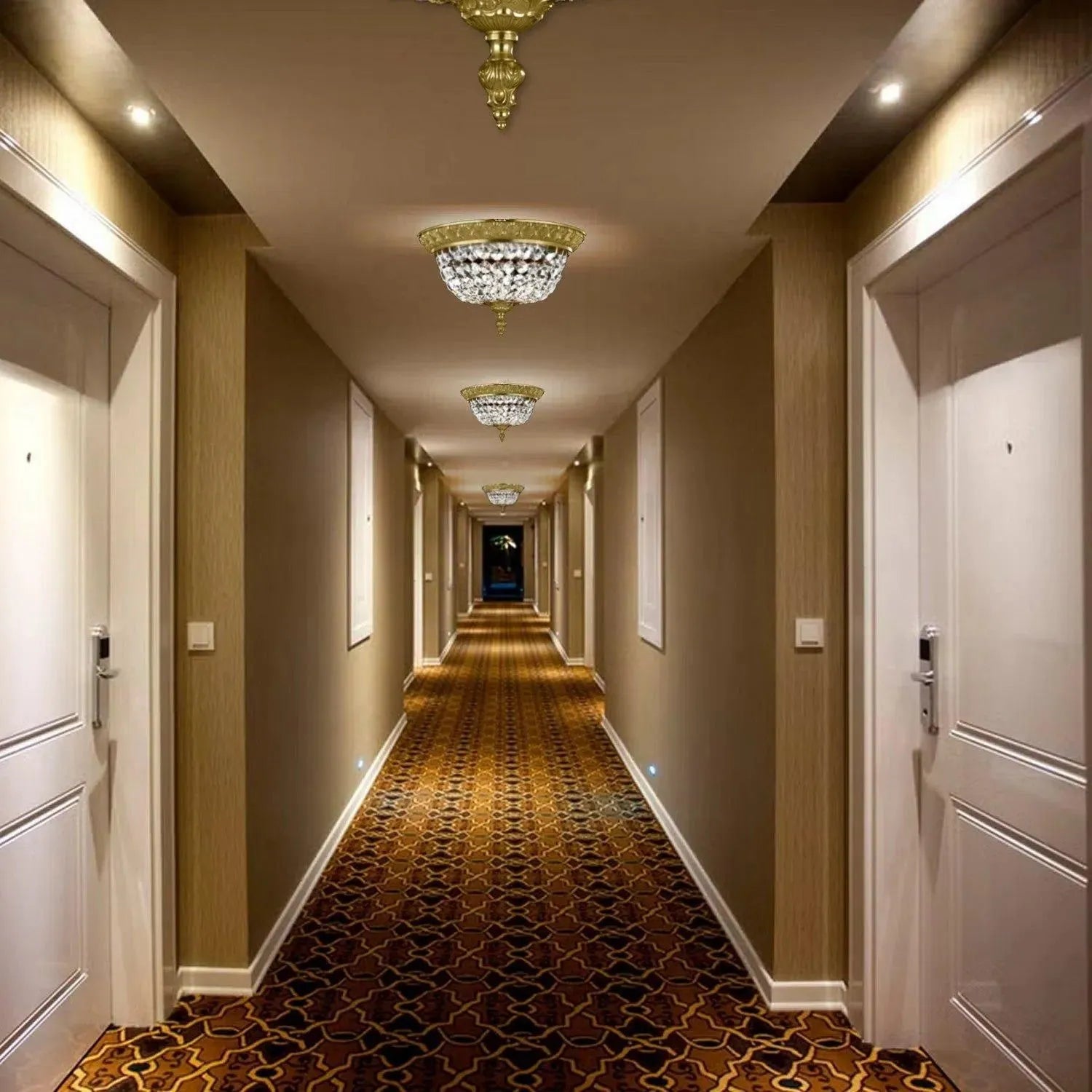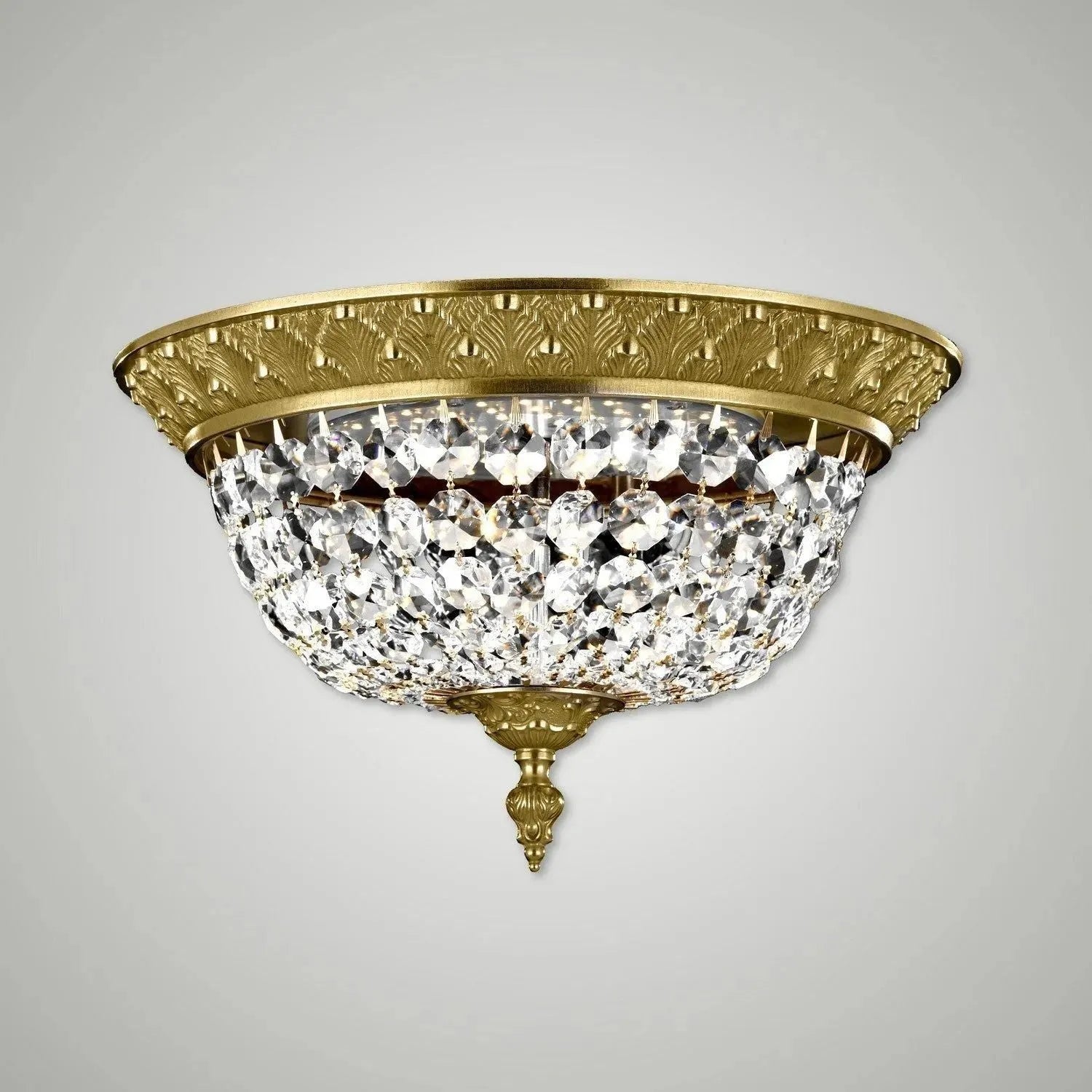 American Brass & Crystal presents the Corinthian Brass and Crystal Flush Basket — a designer lighting solution that pairs classical form with contemporary precision. The low-profile basket silhouette is densely woven with precision-cut crystal drops suspended from a finely cast brass band, producing layered sparkle without overwhelming a room.