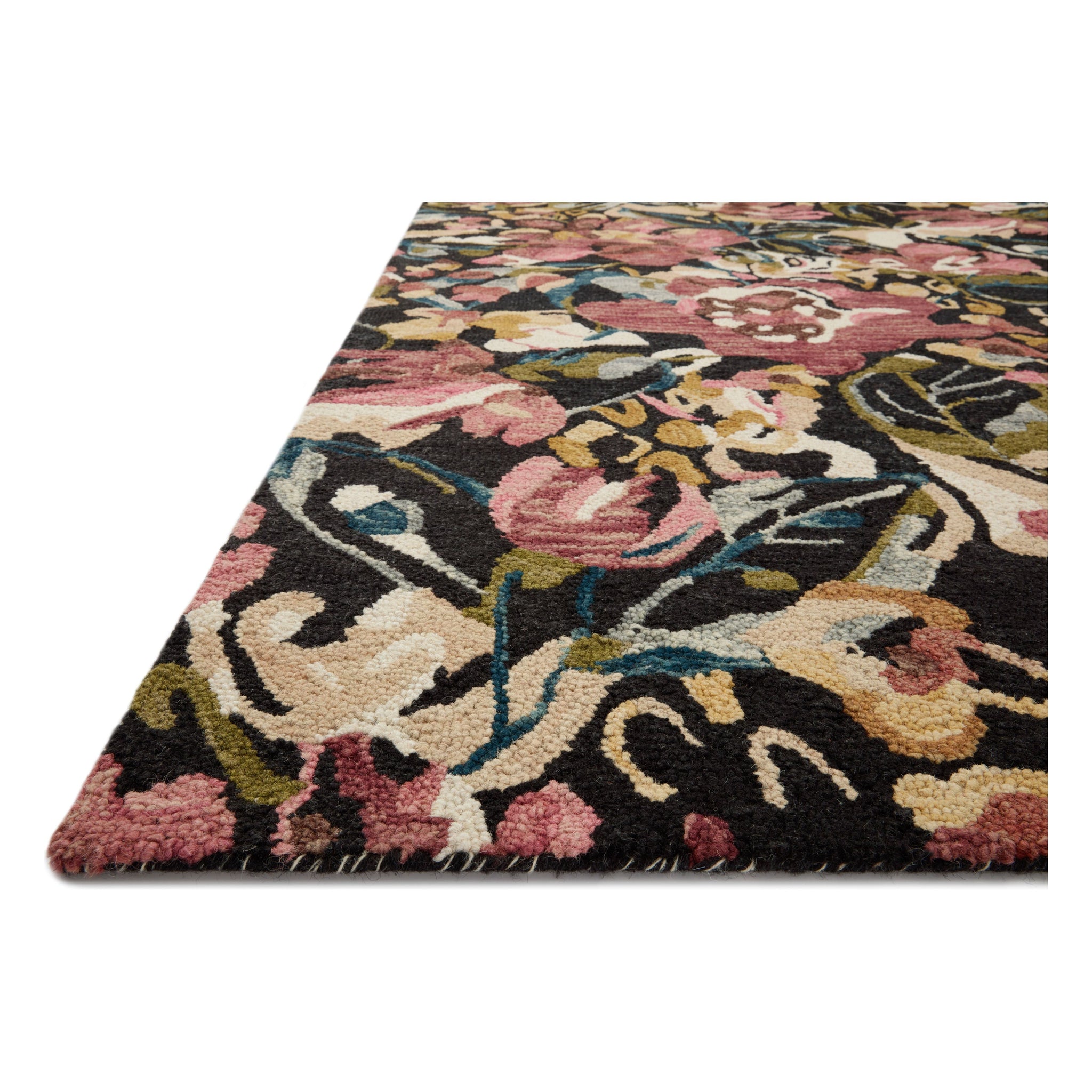 Belladonna Blm 01 Black Berry rug from our enchanting Belladonna Collection. This large-scale floral rug features vibrant and bold color palettes, adding a touch of romance to any room. Crafted by skilled artisans in India using 100% wool, the plush pile enhances the intricate painterly details of the design, creating a stunning visual impact.