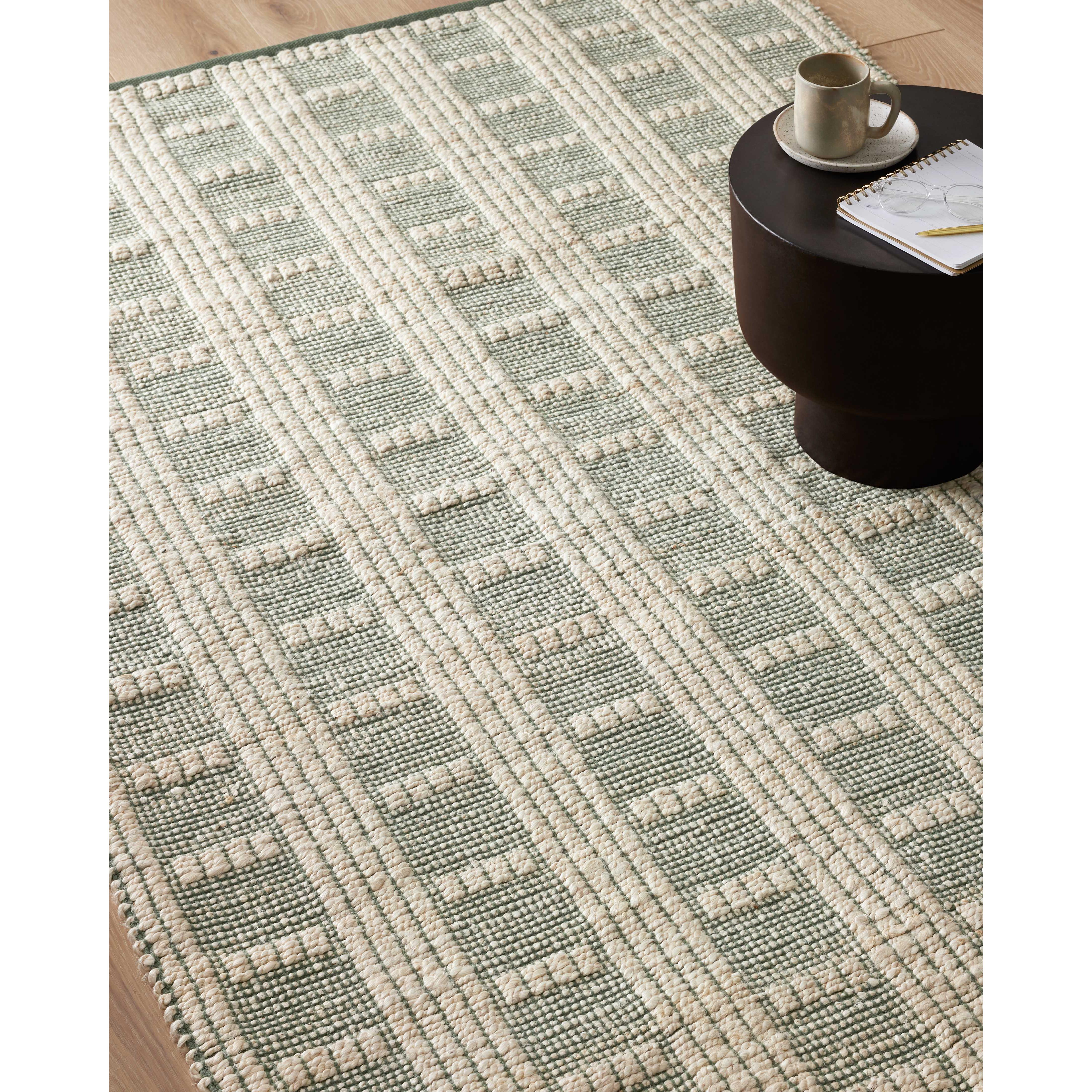 Colton Con 03 Ivory Sage rug from the Angela Rose x Loloi collaboration. This unique piece from the Colton Collection offers a fresh twist on traditional jute rugs by incorporating cotton for a softer feel. With its modern linear designs and earthy hues, the Colton rug effortlessly elevates any space, providing both visual appeal and a subtle textured backdrop.