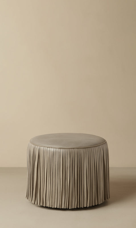 Kora Fringe Leather Ottoman - Ivory