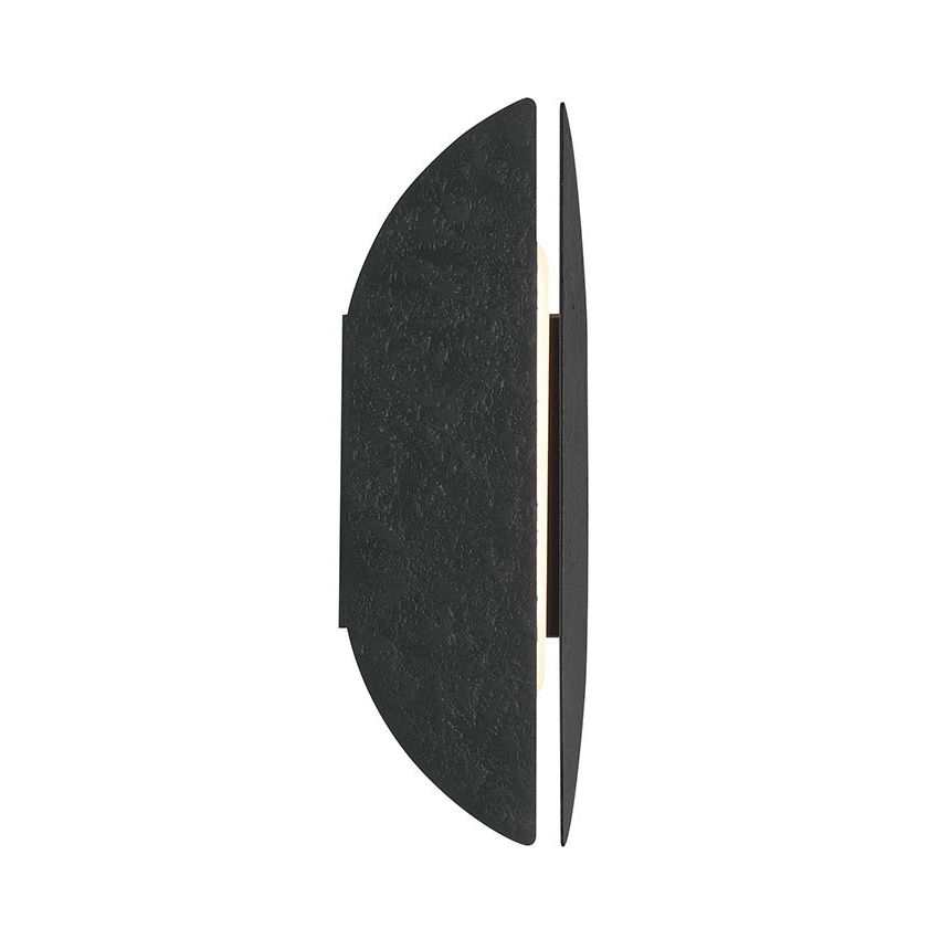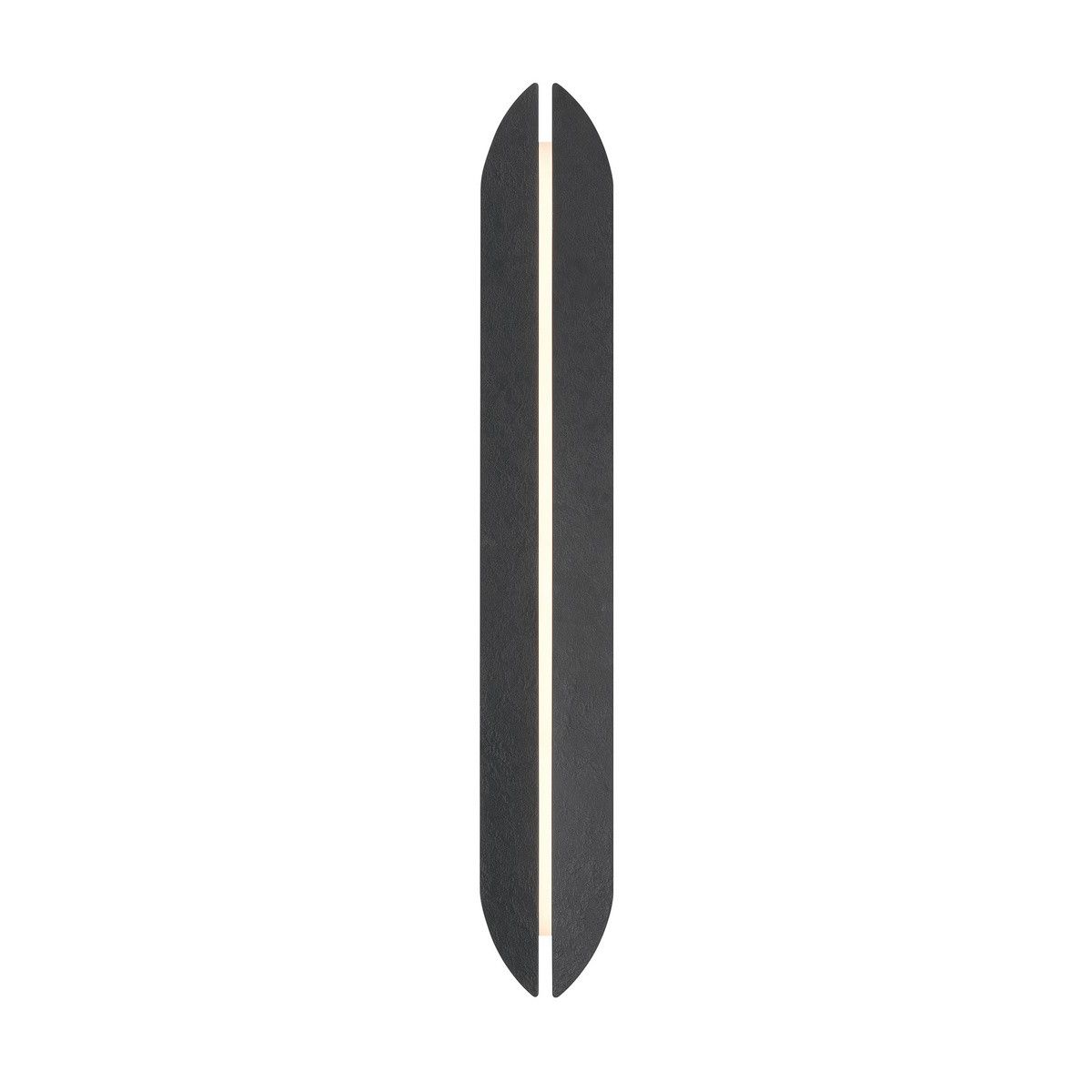 Inntra Outdoor Lantern by Eurofase interprets forged metal textures into a refined linear outdoor sconce—a sculptural piece that balances tactile craftsmanship with restrained illumination. The split-panel form channels light through a discreet central aperture, outlining the richly textured surface inspired by Damascus steel.