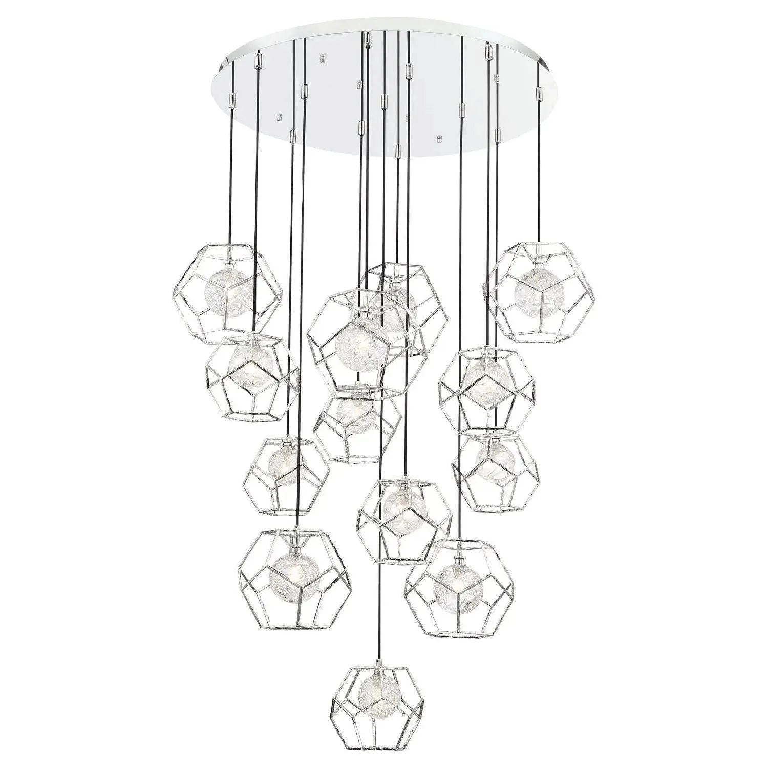 Norway LED Multi-Light Pendant by Eurofase — a sculptural study in geometry and light, designed to read as art in contemporary interiors. Polished metal frames form refined hexagonal cages that float around handmade ice-glass cores, delivering a crisp, refracted glow ideal for entryways, stairwells, and vaulted living spaces.