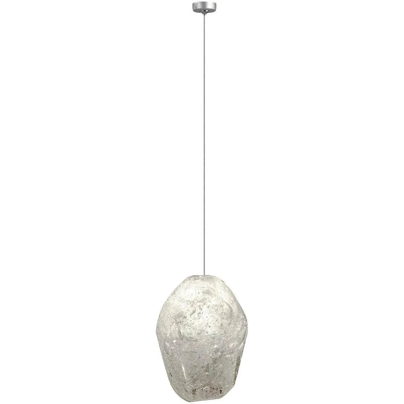 Handcrafted with meticulous attention to finish and form, this one-light pendant features a compact 5" sculptural head suspended from a slim cable and polished canopy—ideal where proportion and detail matter. The layered glass elements create depth, subtle sparkle, and a tactile, organic silhouette that complements modern, minimalist, and transitional schemes.