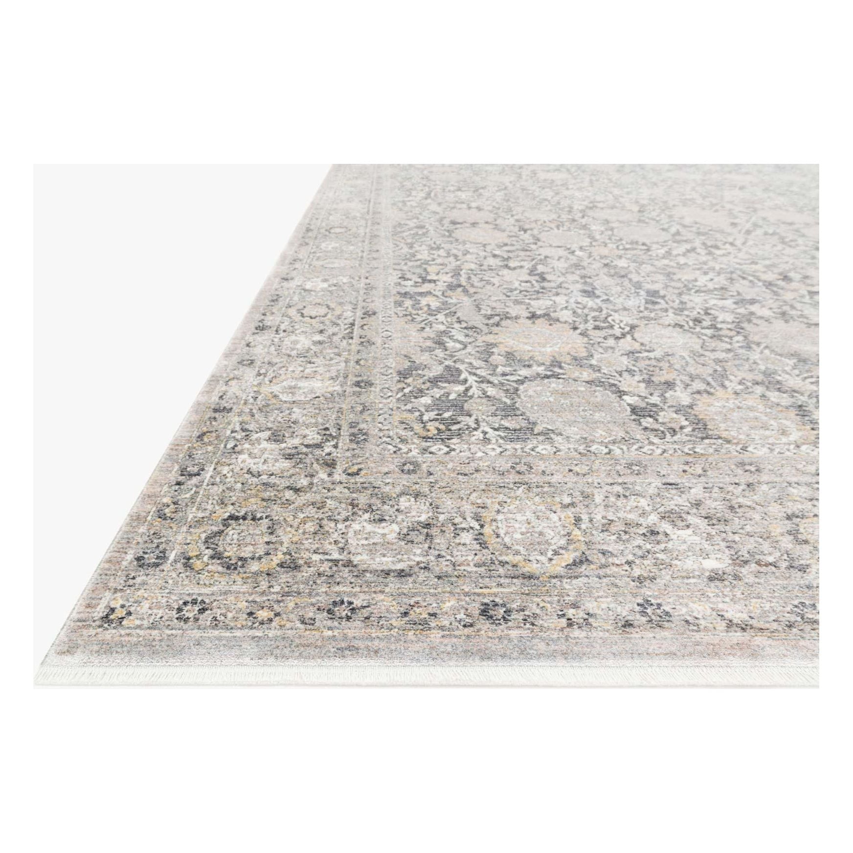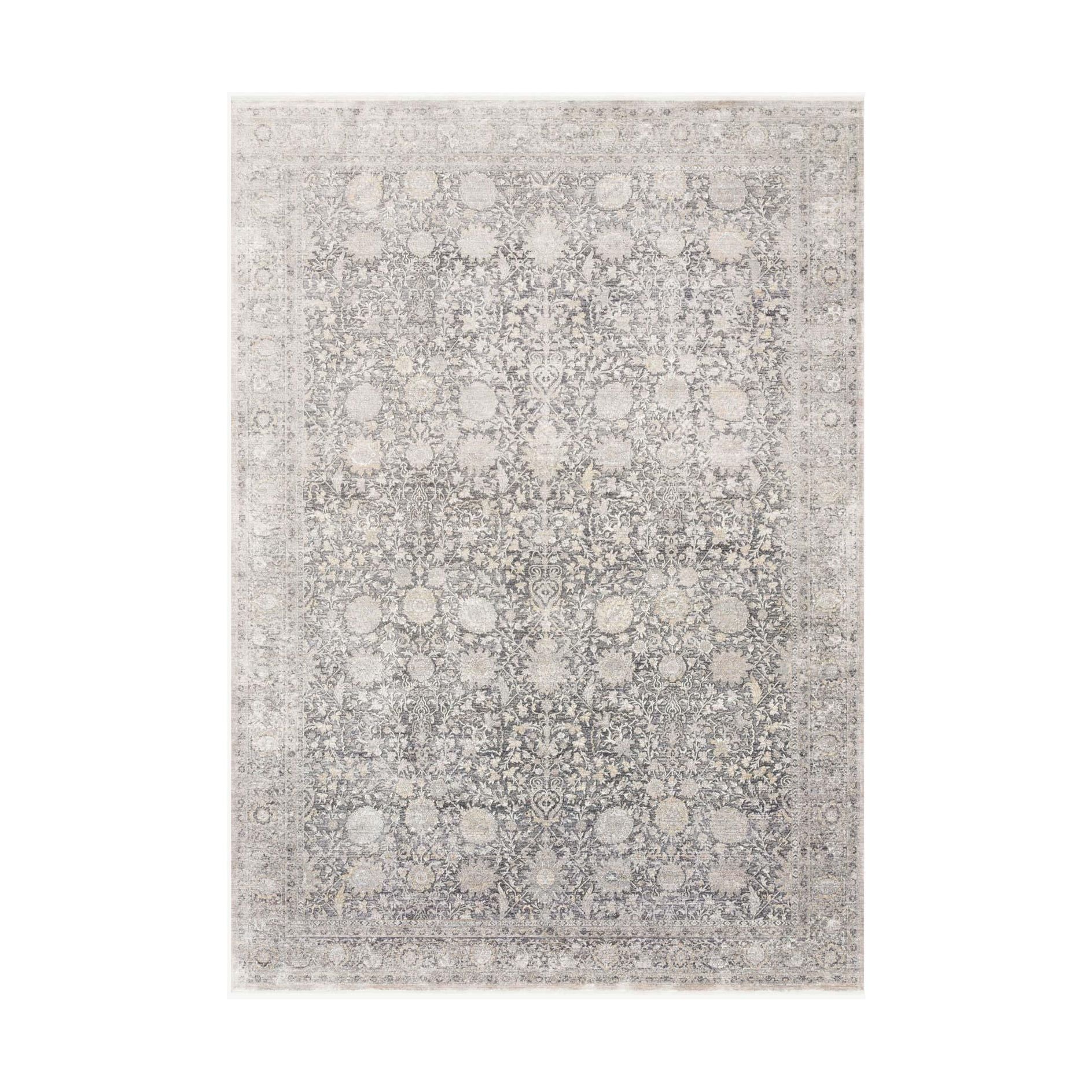 Gemma Gem 02 Charcoal Sand, a stunning addition to the Gemma Collection. Crafted in Turkey using a blend of viscose and acrylic, this rug boasts a luxurious silky smooth texture with a captivating glistening sheen. Elevate the elegance of any room with its traditional-inspired design elements and subtle patina that exudes sophistication.