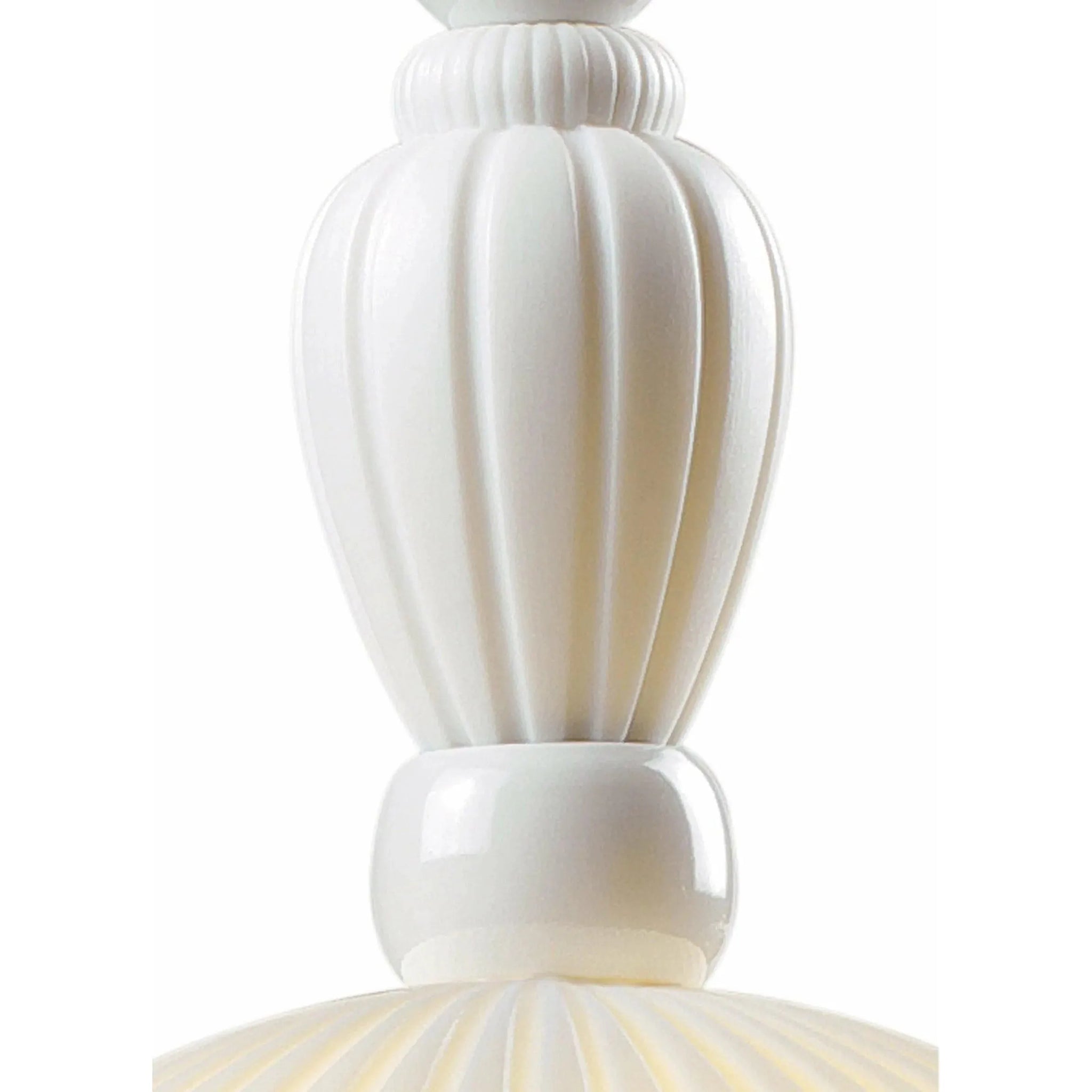 Table lamp with a handmade design in brightly colored porcelain and floral decorations with a light.