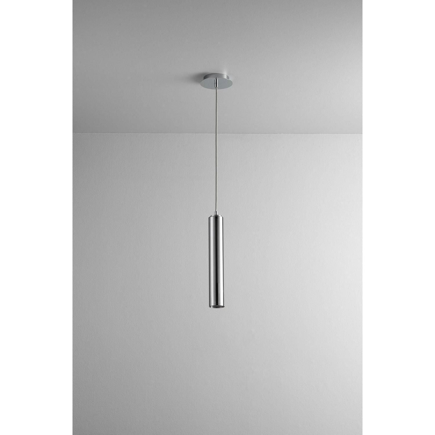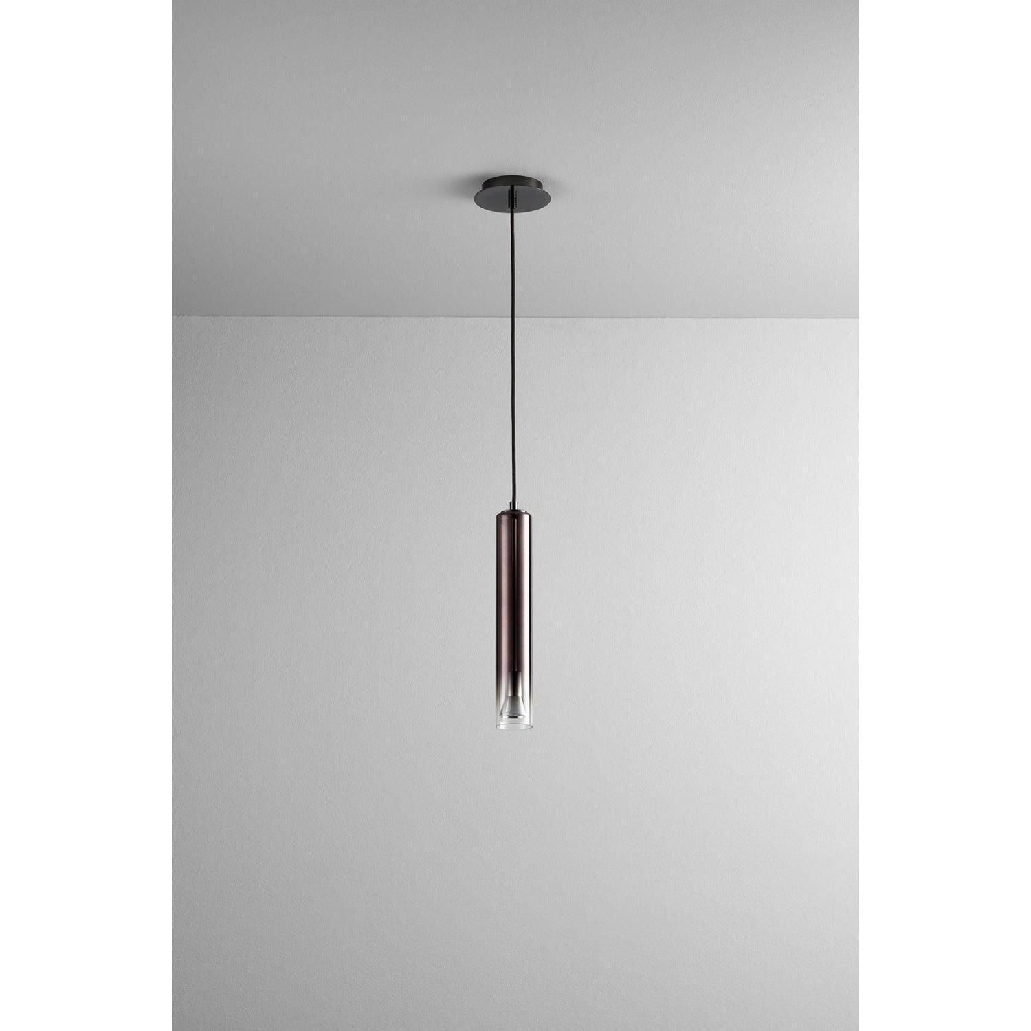 Galaxy LED Pendant by Oxygen Lighting is a refined statement fixture that pairs minimalist form with precision illumination. A slender, hand-finished cylindrical glass body suspends from a discrete round canopy, creating a vertical light column that reads as sculpture in modern interiors.