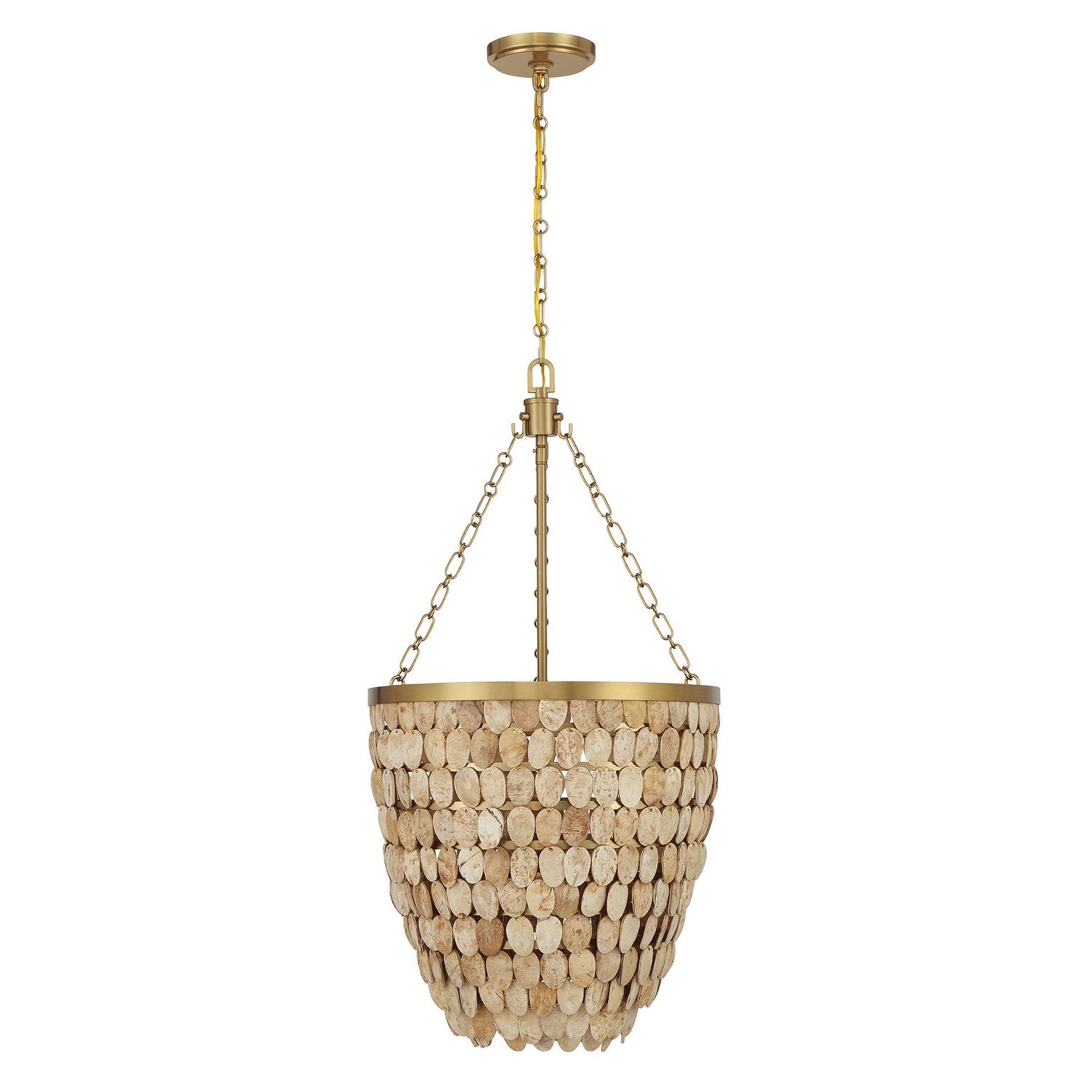 The Catalan Pendant delivers inviting ambient illumination while adding texture and architectural interest to the room. The layered disc shade scatters light to create a subtle, shimmering ambience that enhances dining experiences, entryways, and living areas. Built to last with a brass-tone finish, it offers enduring style that complements contemporary, transitional, and classic interiors.