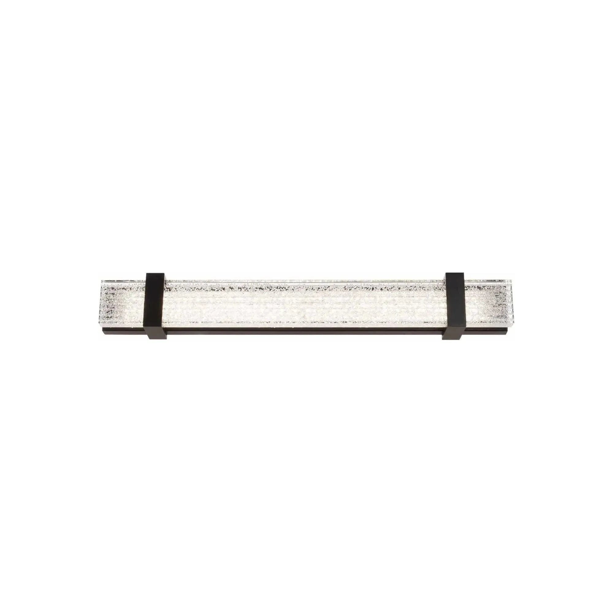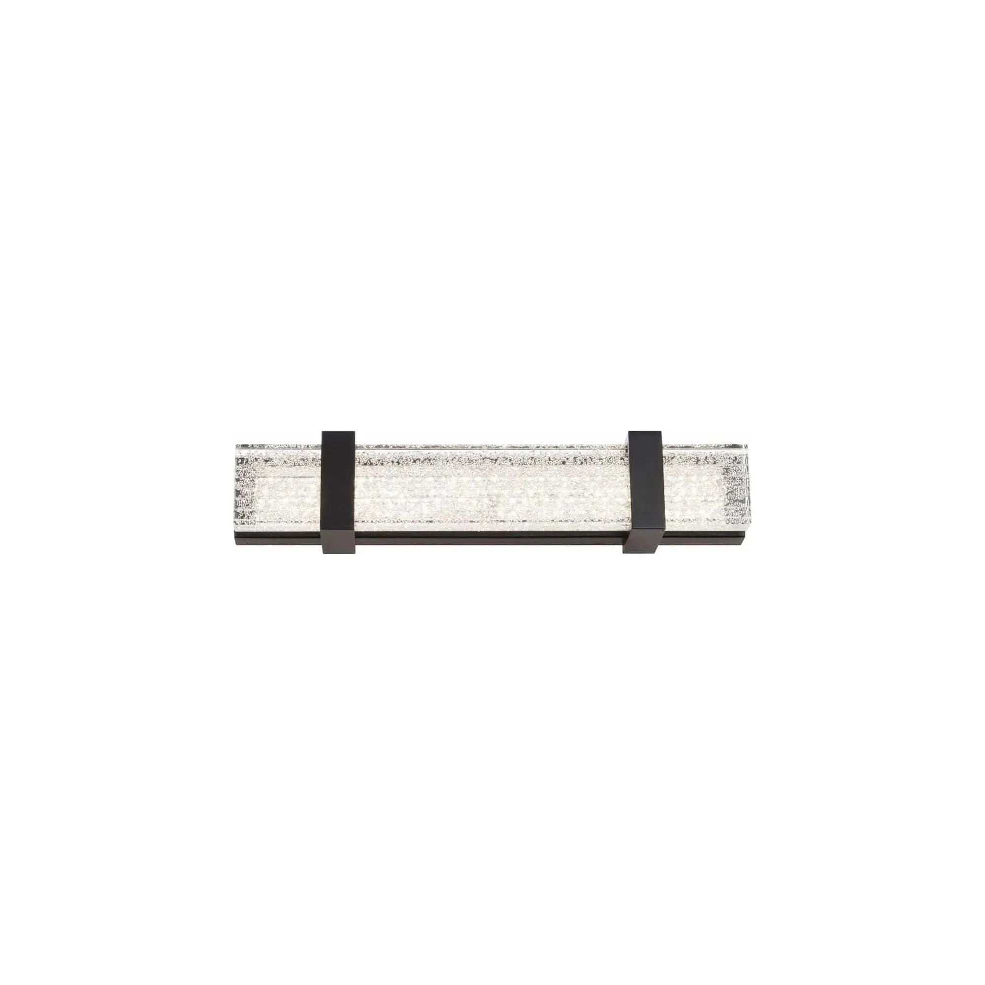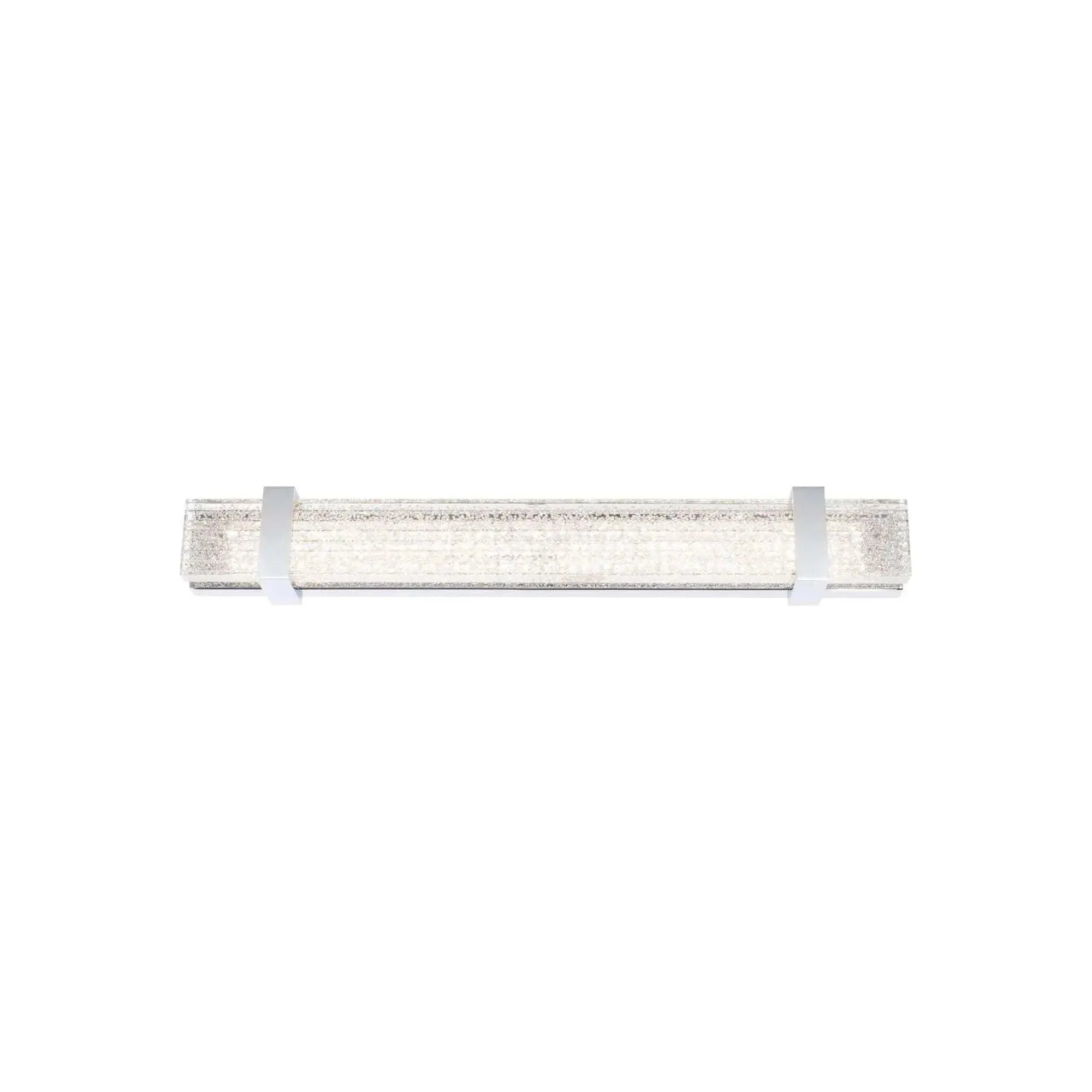 A stunning bath wall luminaire for the ages. V-cut channels are cut into Schonbek optic haze crystal