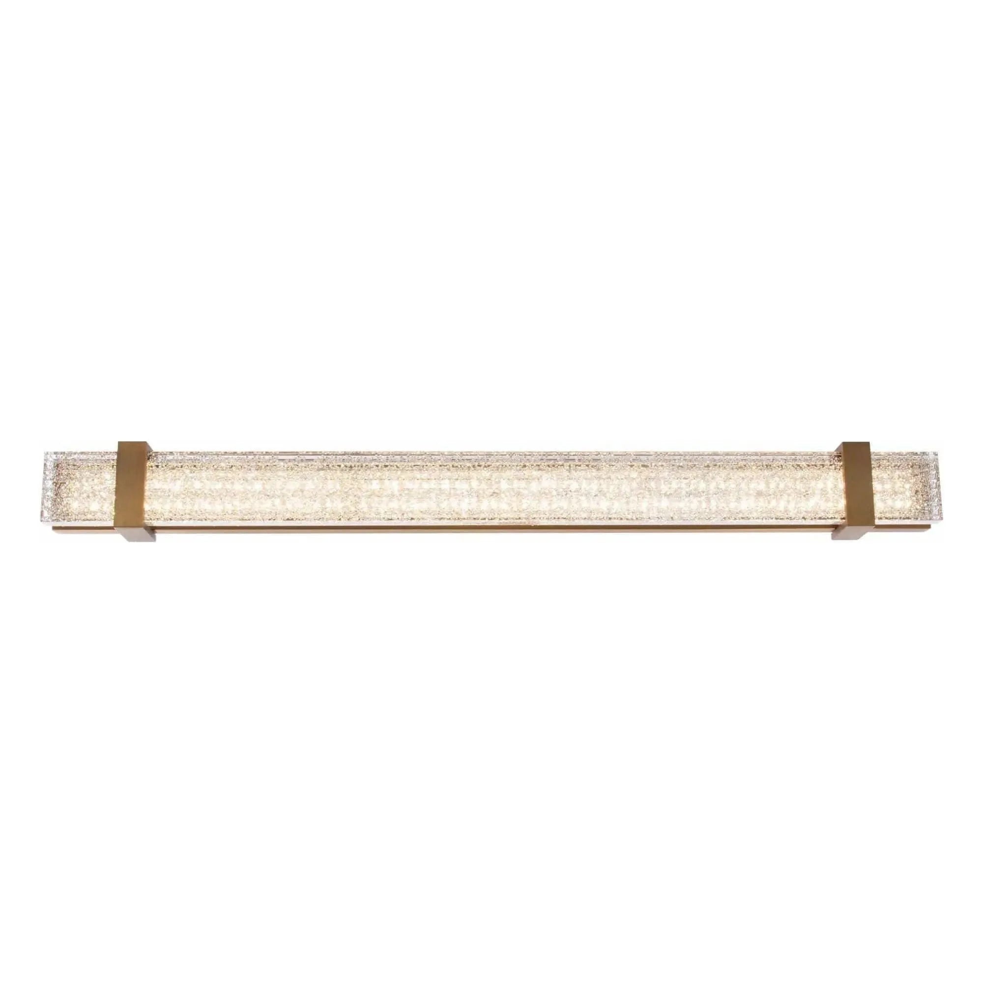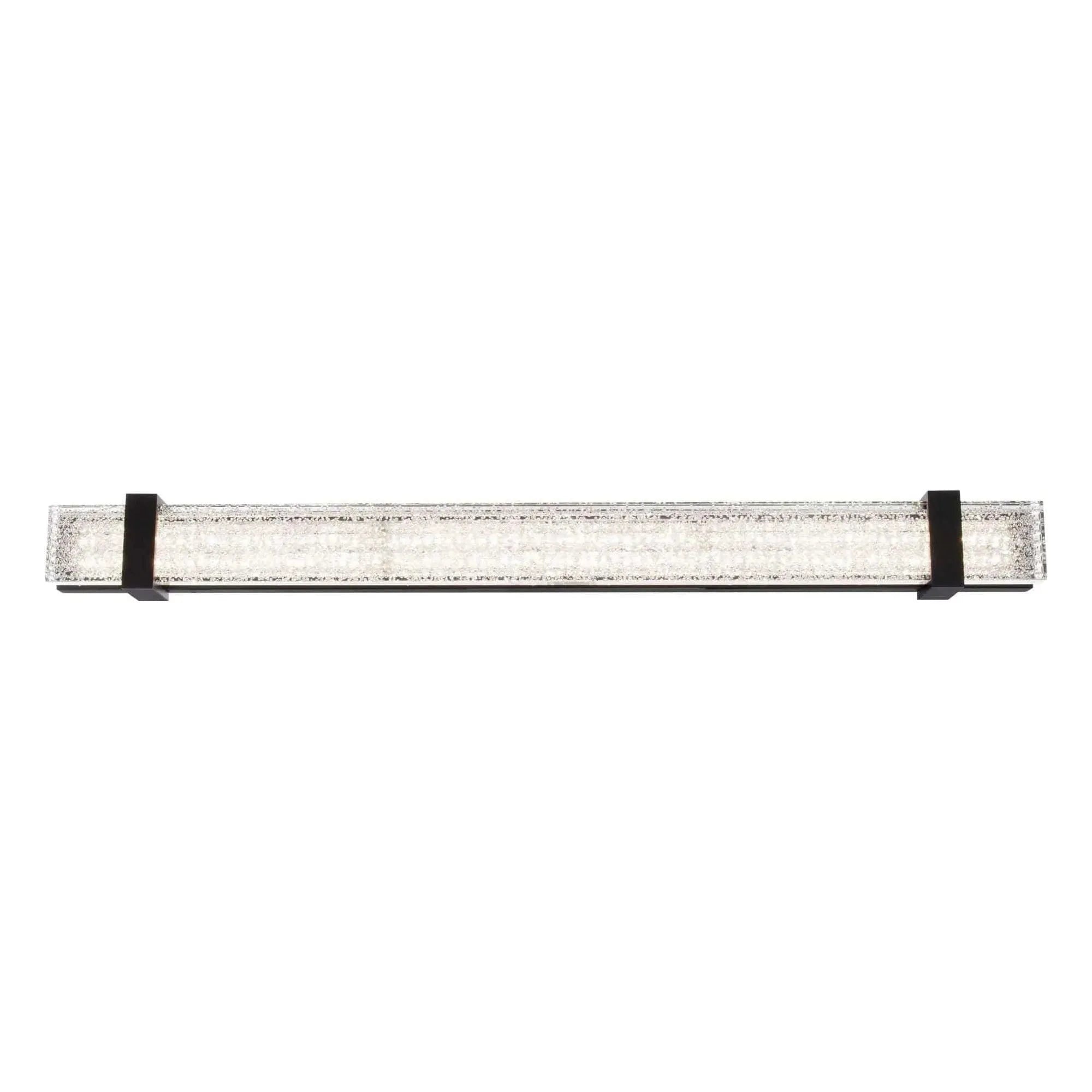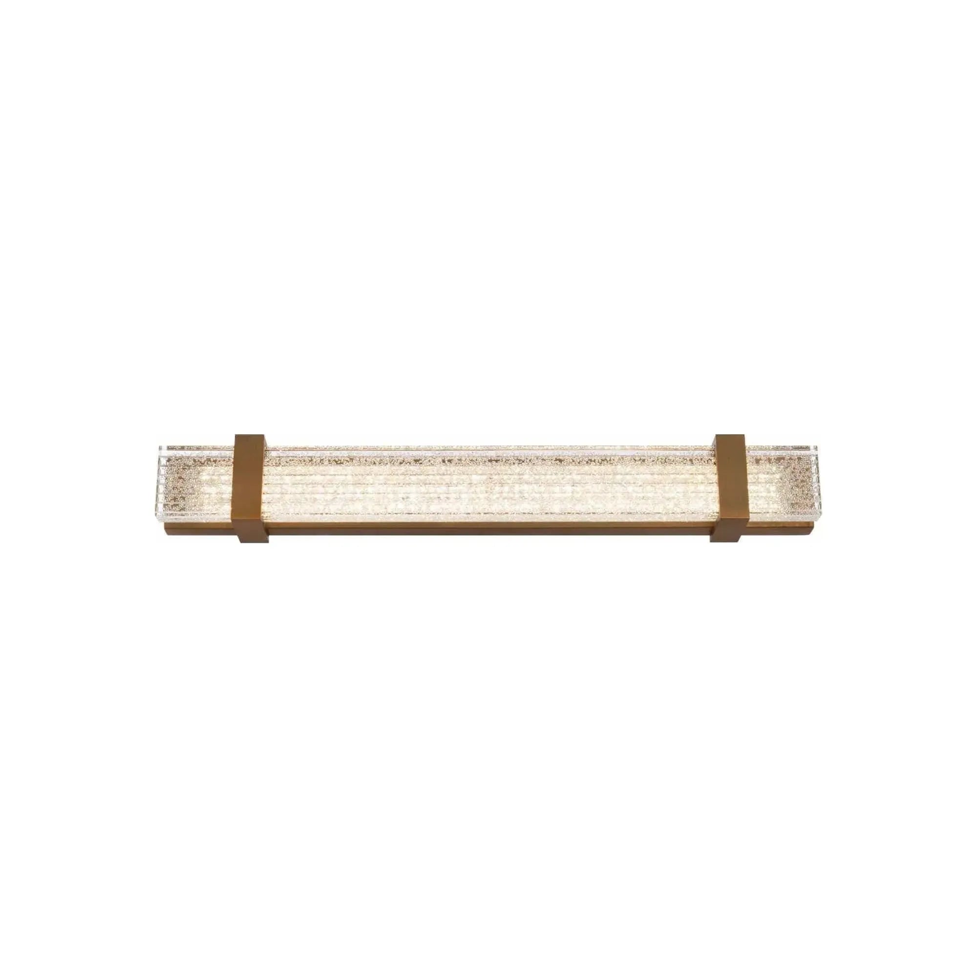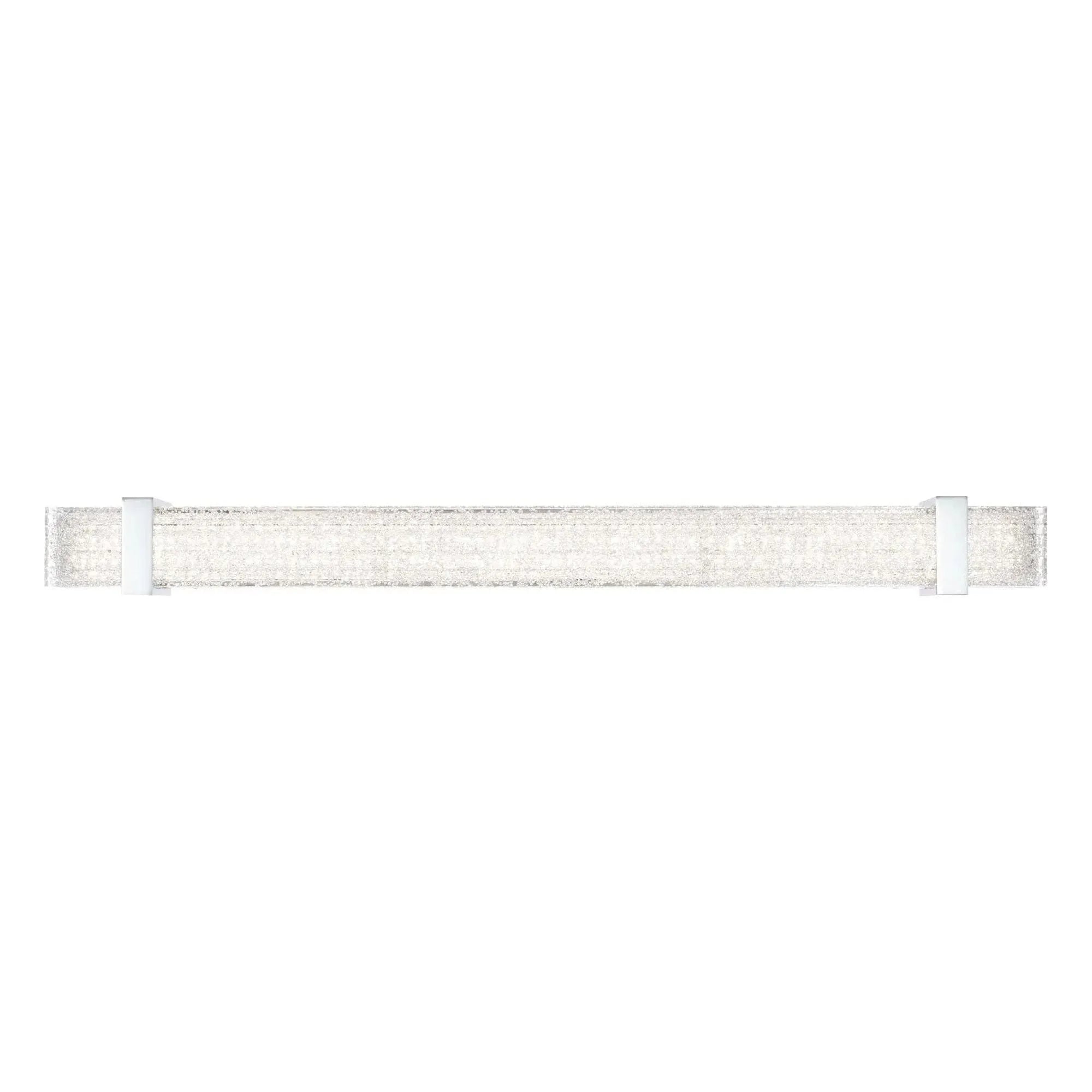 A stunning bath wall luminaire for the ages. V-cut channels are cut into Schonbek optic haze crystal