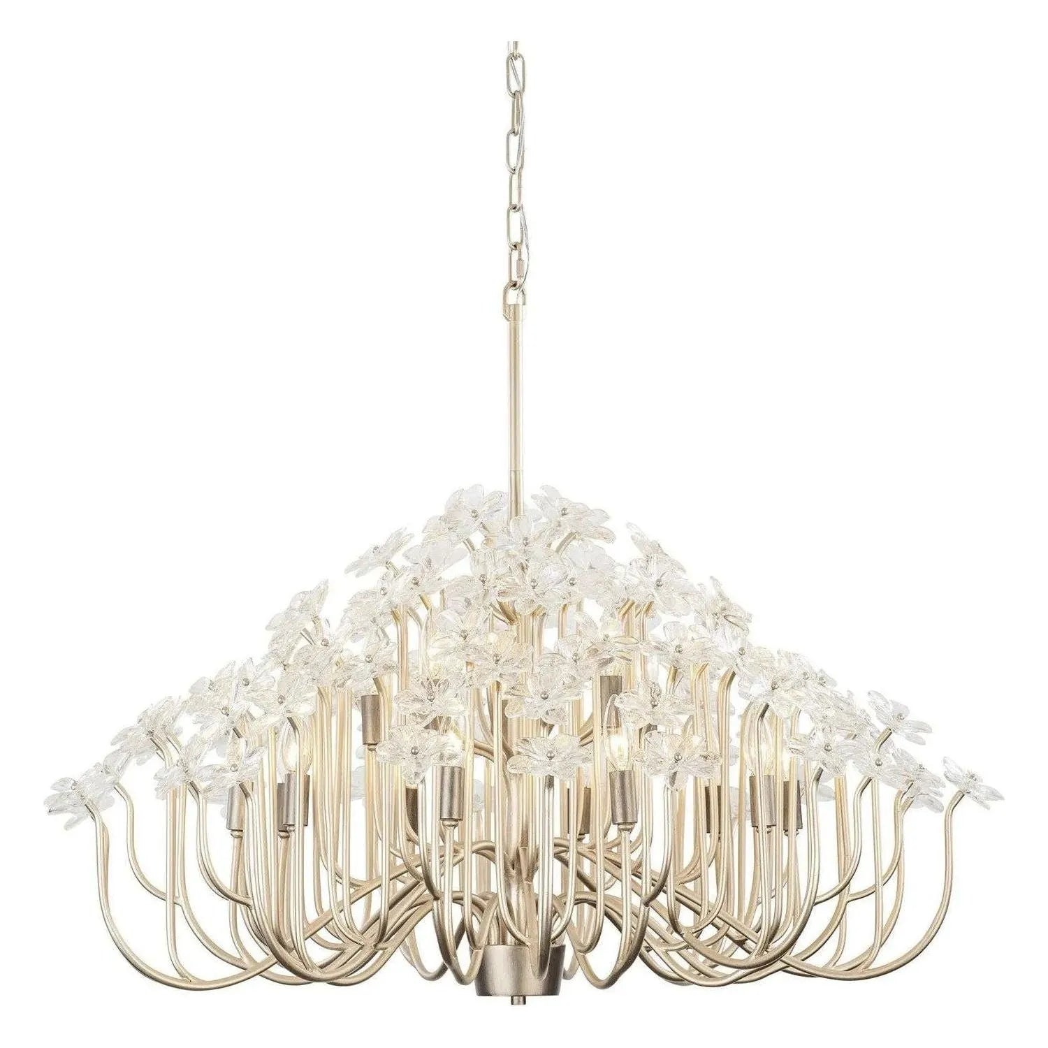 When you first see it aglow with its fine intricacies, it may not show, but the Wildflower collection started its path to existence thanks to a rocking song from the 80s of the same name - and it's the most beautiful thing, yeah! Taking center stage is a touch of Danish modern on top of Mid-Century. Wildflower combines delicate, handmade ice glass flower petals, with equally delicate wispy hand-forged and recycled steel tubing and metal work. Available in gold or black.