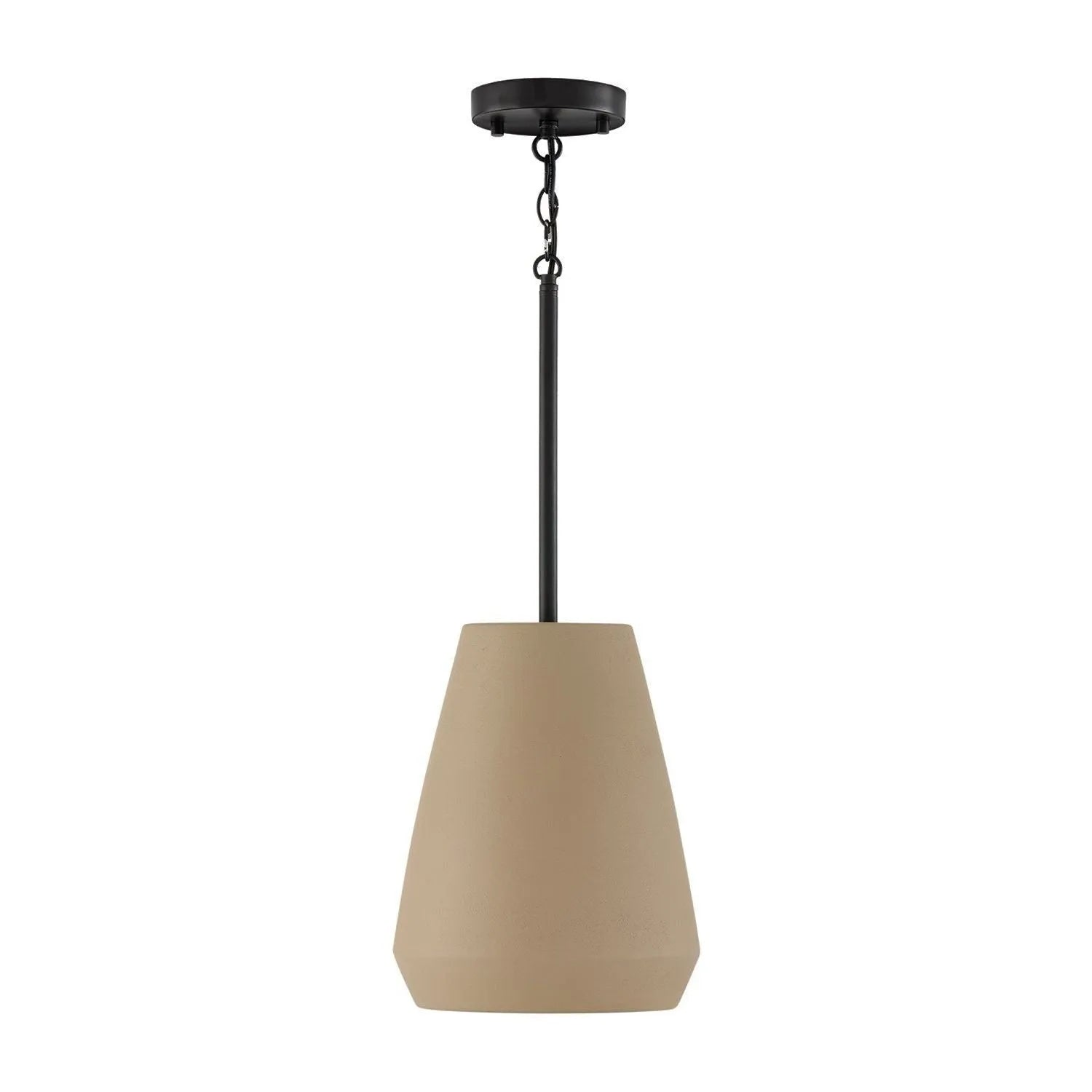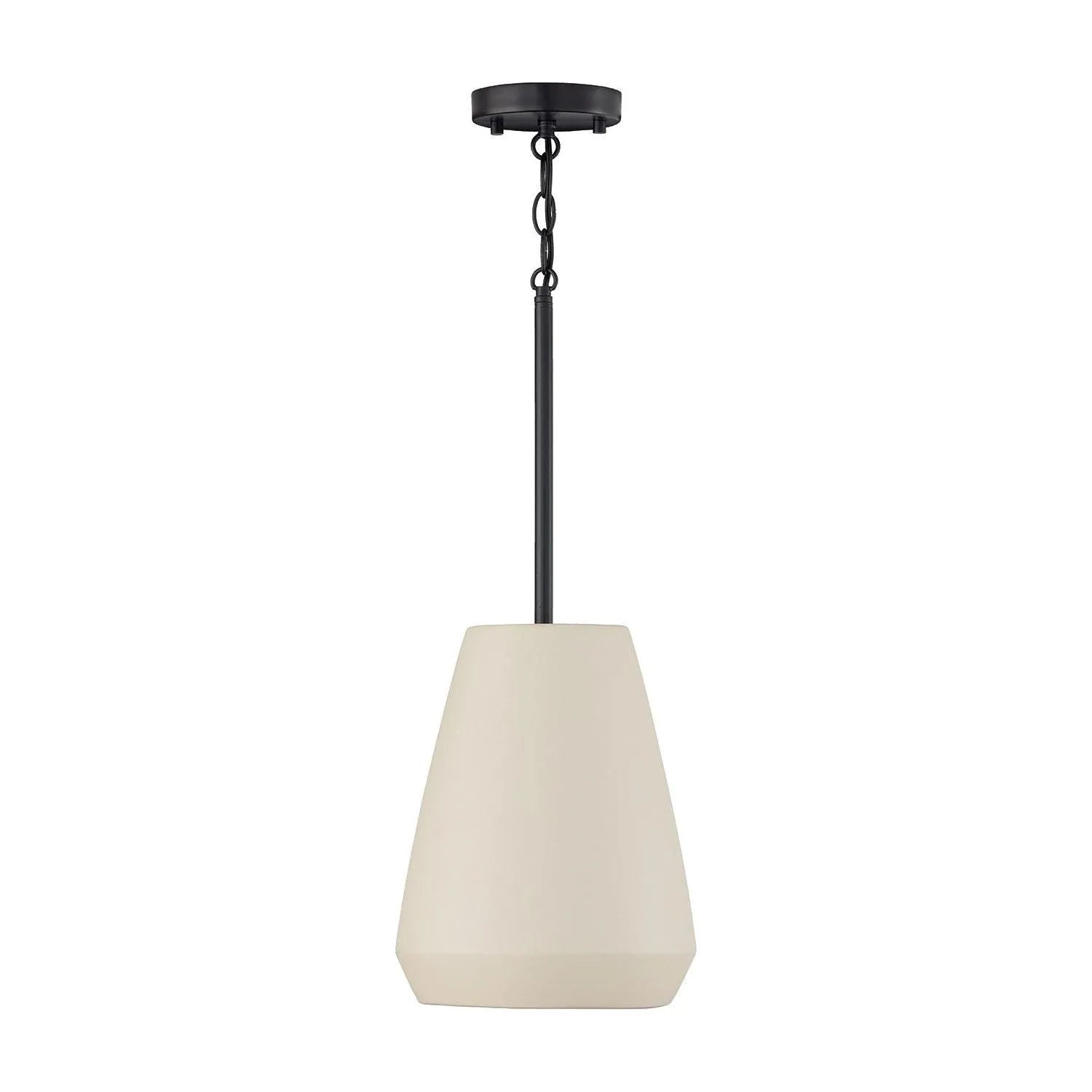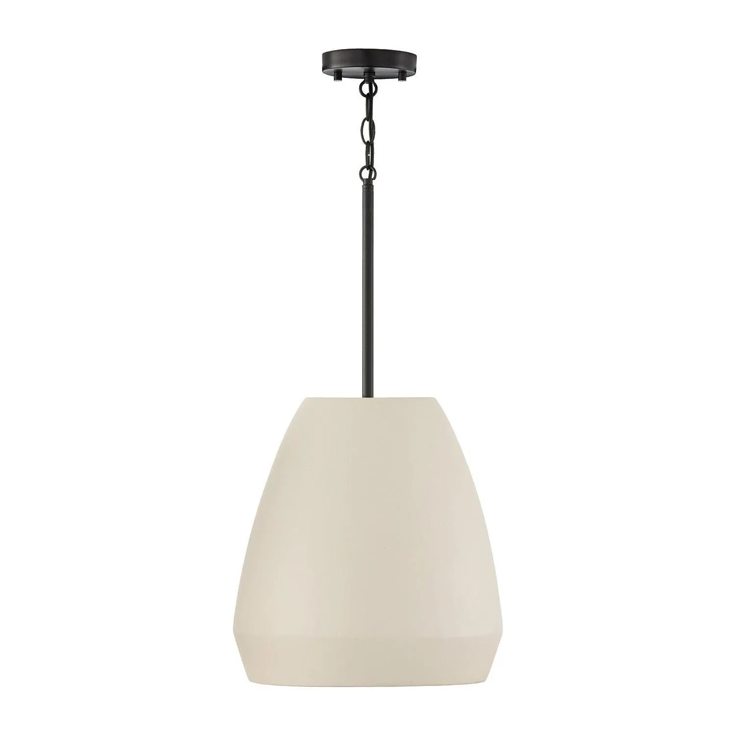 Inspired by earth tones and meticulously hand-painted, the soft Ivory finish illuminates the sculpted silhouette, creating a light, airy presence that complements both warm and cool interiors. Grounded with Matte Black metal details, this pendant blends rustic authenticity with modern edge for a timeless look.
