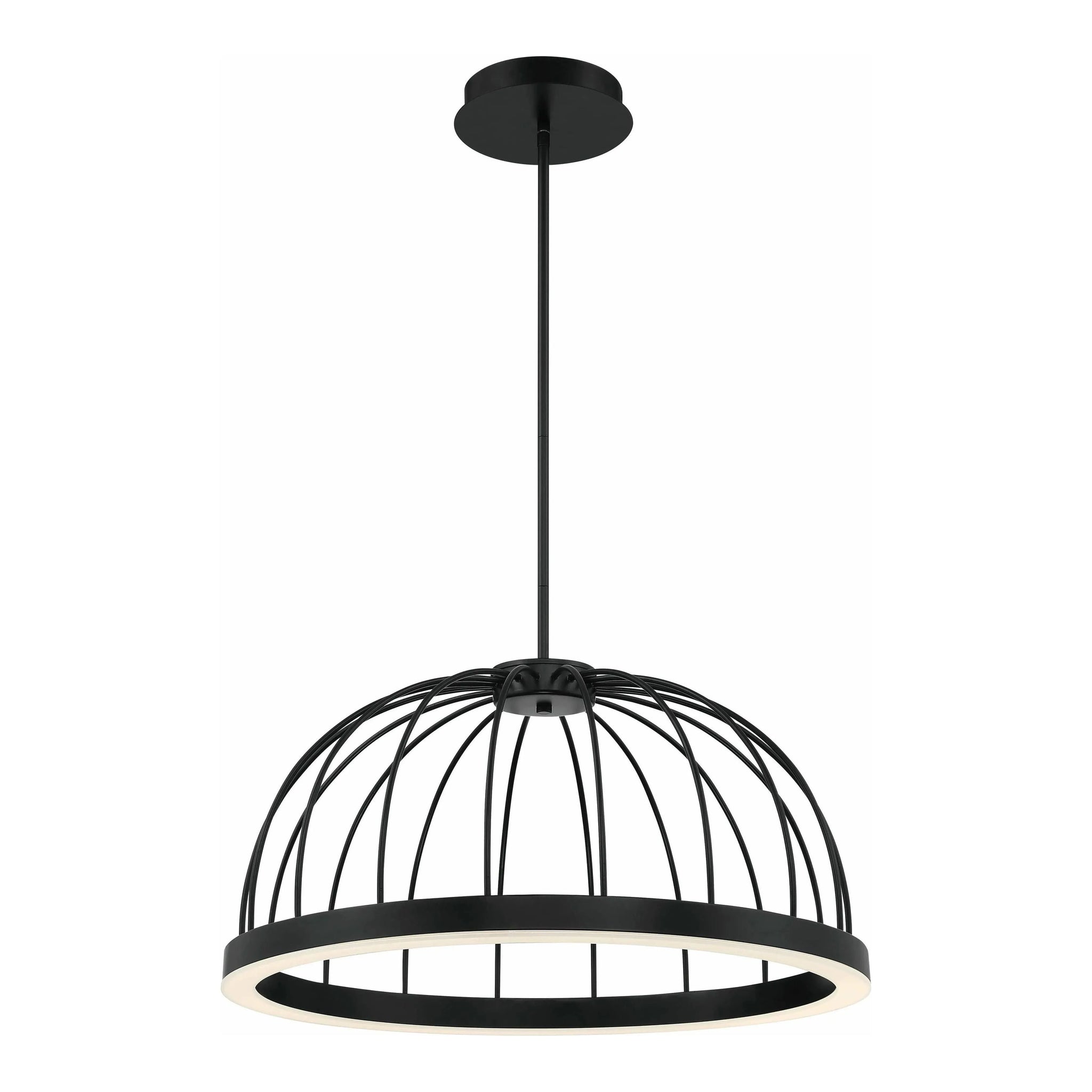 Eurofase Bura LED Pendant — a modern reinterpretation of the classic bird‑cage silhouette, engineered to deliver a crisp architectural presence and soft, even illumination. The slender steel frame in rich black surrounds an integrated LED ring lined with acrylic for glare‑free, uplifting light—an ideal designer lighting solution for elevated interiors and luxury décor projects.