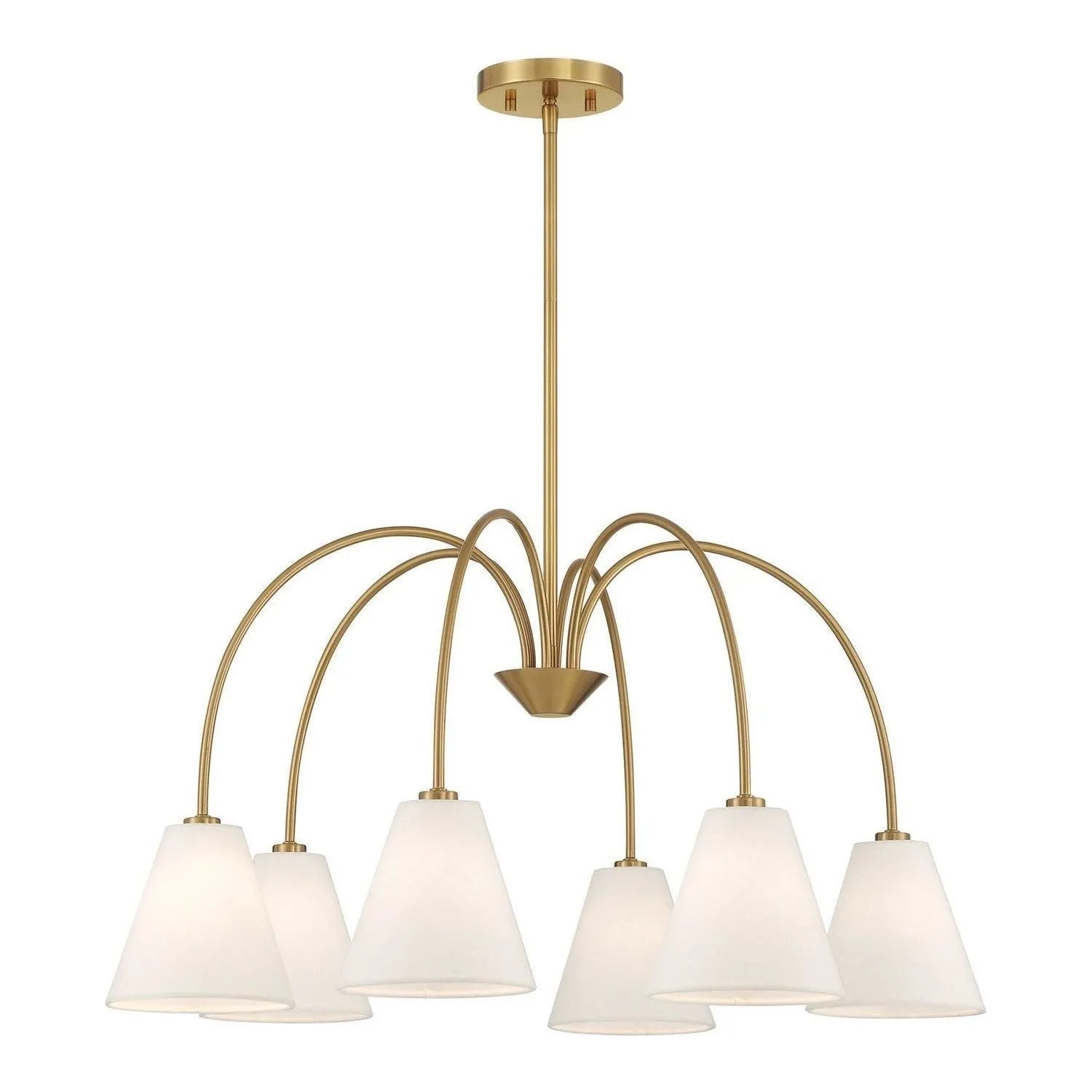 An elegant study in arching form and restrained finish, the Chandelier M100138 by Meridian Lite Trends pairs slender, curving arms with white linen shades to create a refined focal point for contemporary interiors.