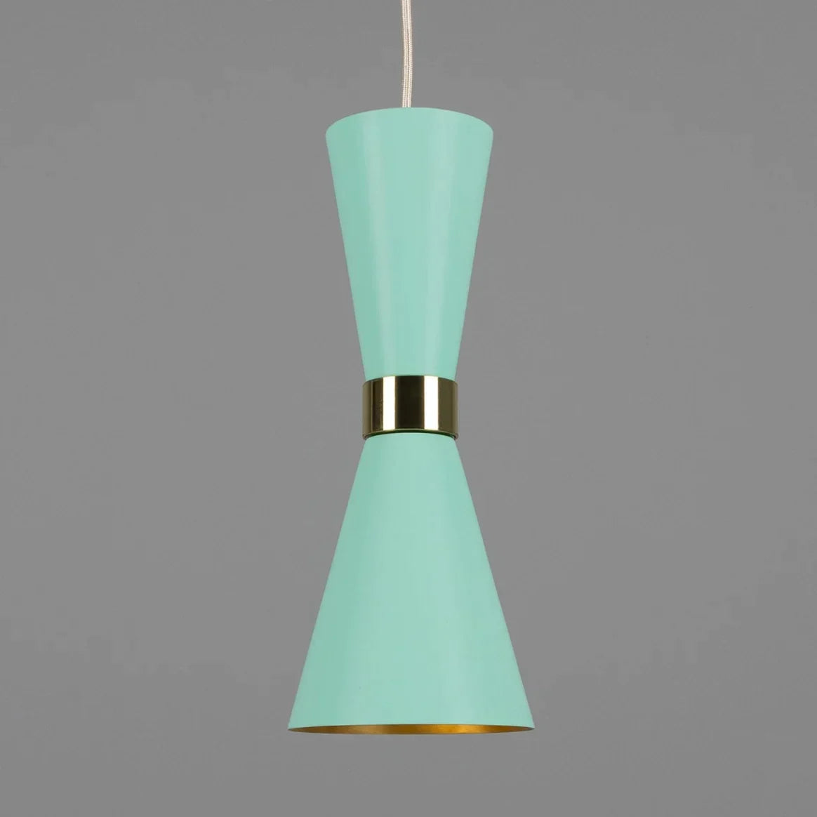 Cairo Coloured Pendant Light by Mullan Lighting is a sculptural, mid-century‑inspired designer lighting piece that balances refined form with practical illumination. The tapered double-cone silhouette and polished metal collar create a focal point that reads as both architectural and understated.