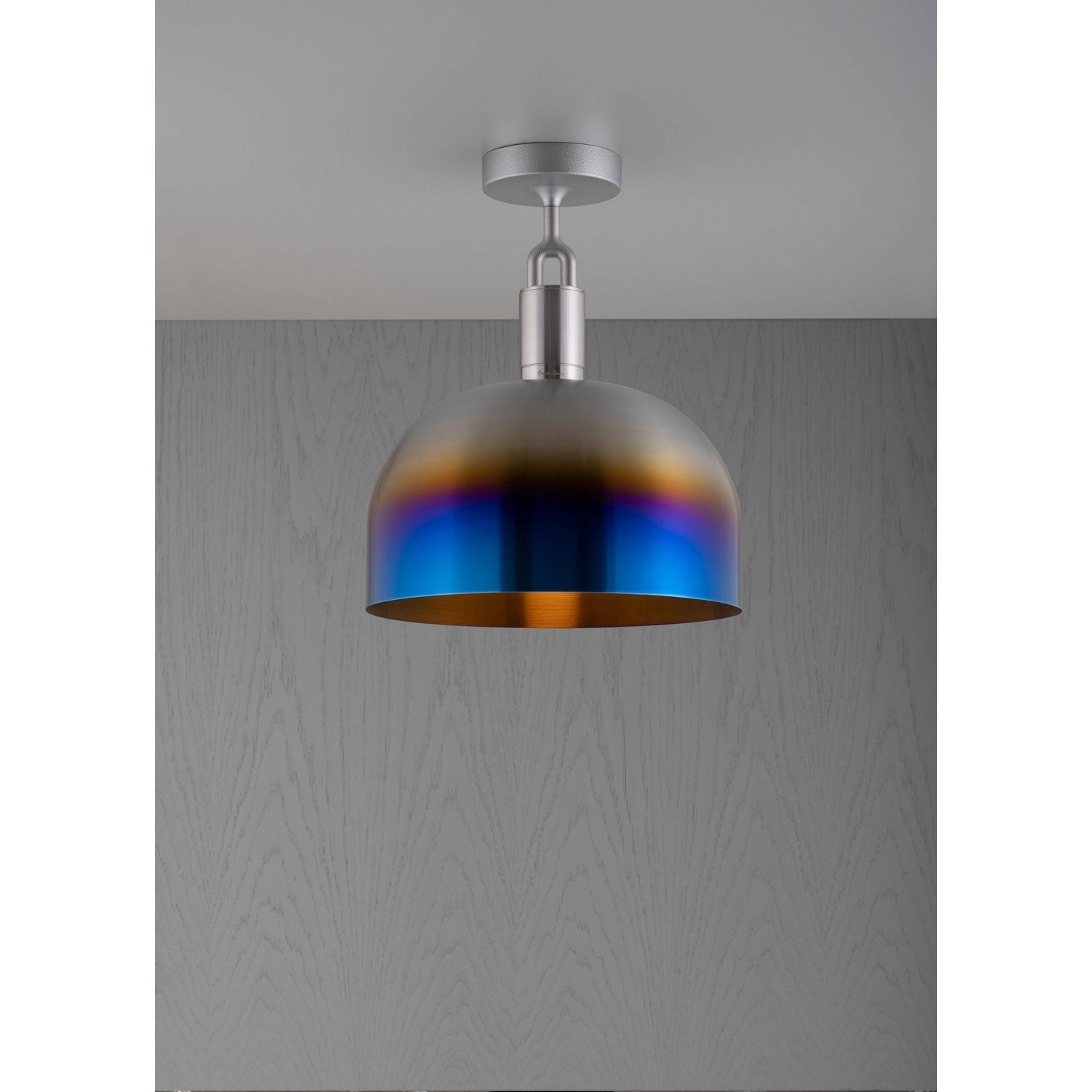 A ceiling light and shade, combining machined, hand-spun and cast solid metal, all refined by hand. It features our cast forked detailing and signature diamond-cut linear knurling. The light comes complete with a Forked-specific dimmable Buster Bulb, casting a soft ambient light.