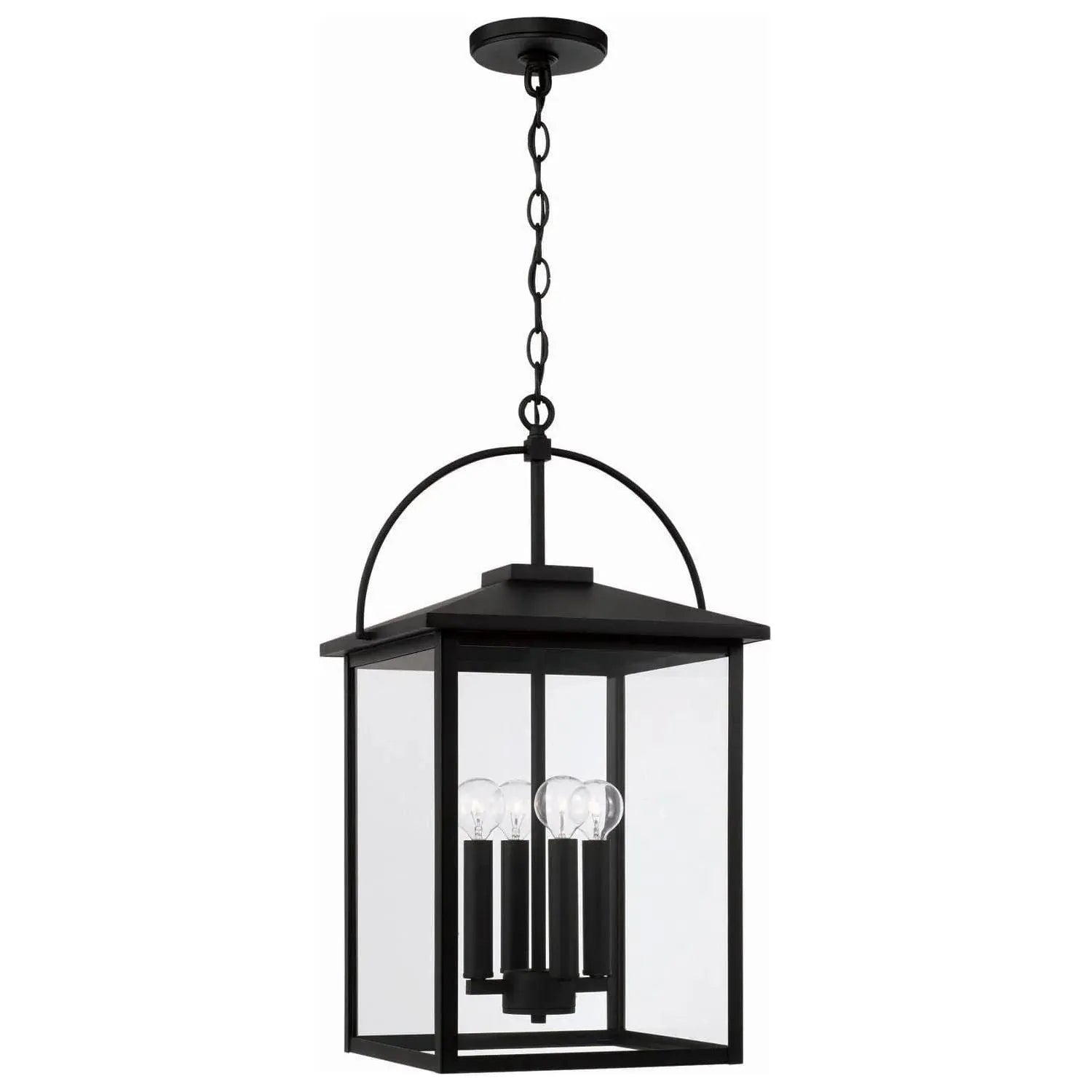 A refreshingly modern take on a traditional lantern, Bryson features illuminated clear glass panes trimmed with an elegant arched top and a bold Black finish that never goes out of style.