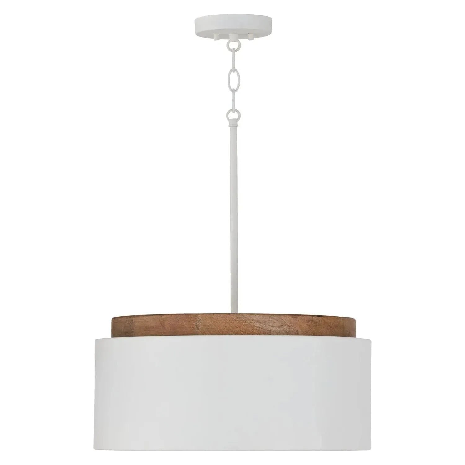 Mango wood and modern design form the Liam Pendant. The Cylindrical Soft White glass shade combined with the Matte White finish creates a sophisticated combo, while the Light Wood details provide a visual balance for natural Scandinavian style.