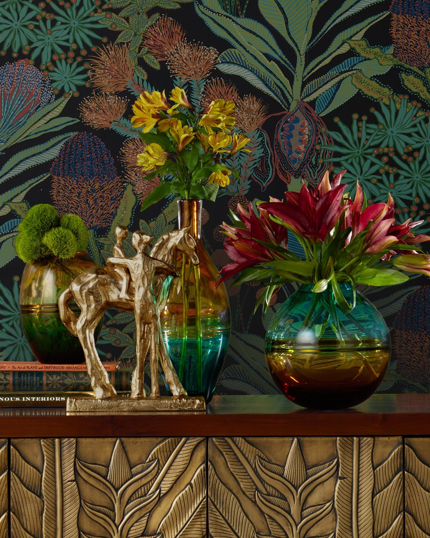 The Dujardin Equestrian Sculpture is a captivating work of art crafted from cast aluminum with a brilliant gold finish. Its subtle surrealistic lines gently imply the features of the figures—a mother lovingly supporting her child as he rides a horse for the first time. This heartwarming piece beautifully captures a sentimental moment, making it an elegant and meaningful decorative accessory.