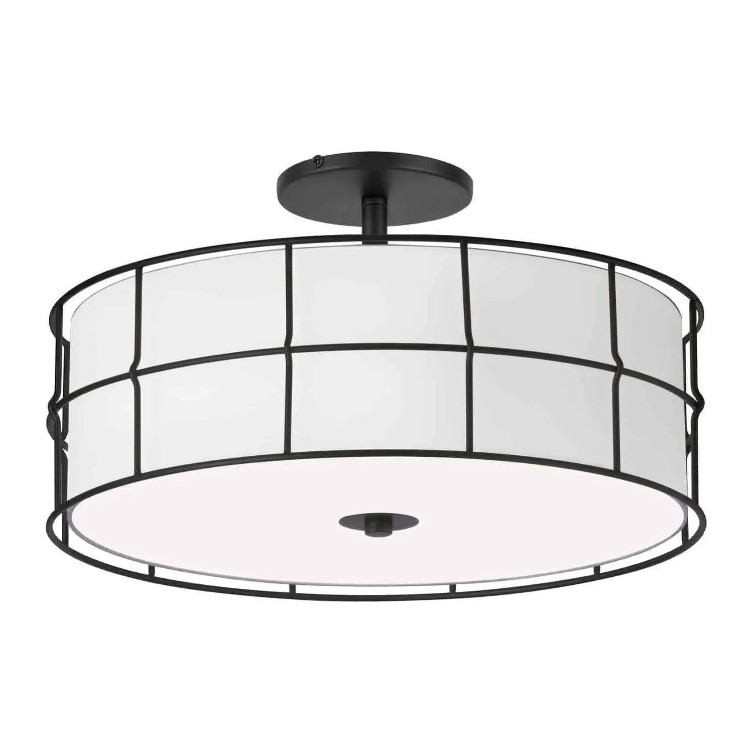 Dainolite Alcala Semi-Flush Mount refines ceiling lighting with a clean drum silhouette wrapped in a slender metal cage — a study in measured lines and warm finish. Designed for interiors where form and restraint matter, it delivers even, glare-controlled illumination while asserting a subtle sculptural presence.
