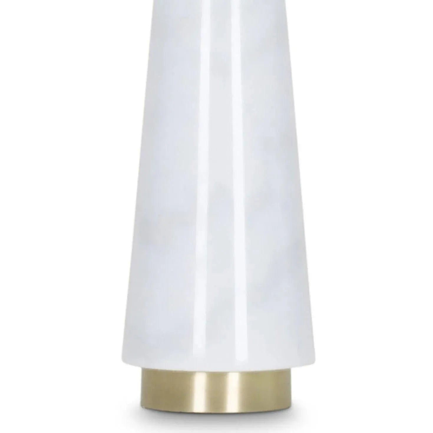 A slim, tapered body composed of white marble and Antique Brass is chic and refined in this table lamp. Beige cotton on the shade provides another neutral aspect. Two of these on either side of a bed would bring a bold and modern design detail to a master bedroom alongside other contemporary furniture.