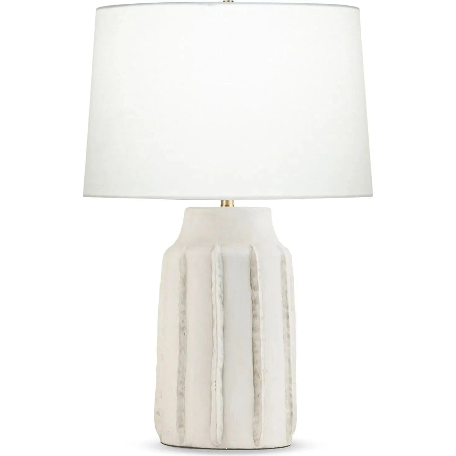 Illuminate your home in style with this detailed Valentina Table Lamp. Featuring a ribbed ceramic base and finished with a natural off-white linen shade, add this lamp to a sideboard or a corner table for an instant aesthetic upgrade in your home. Also available in a distressed black & brown finish.
