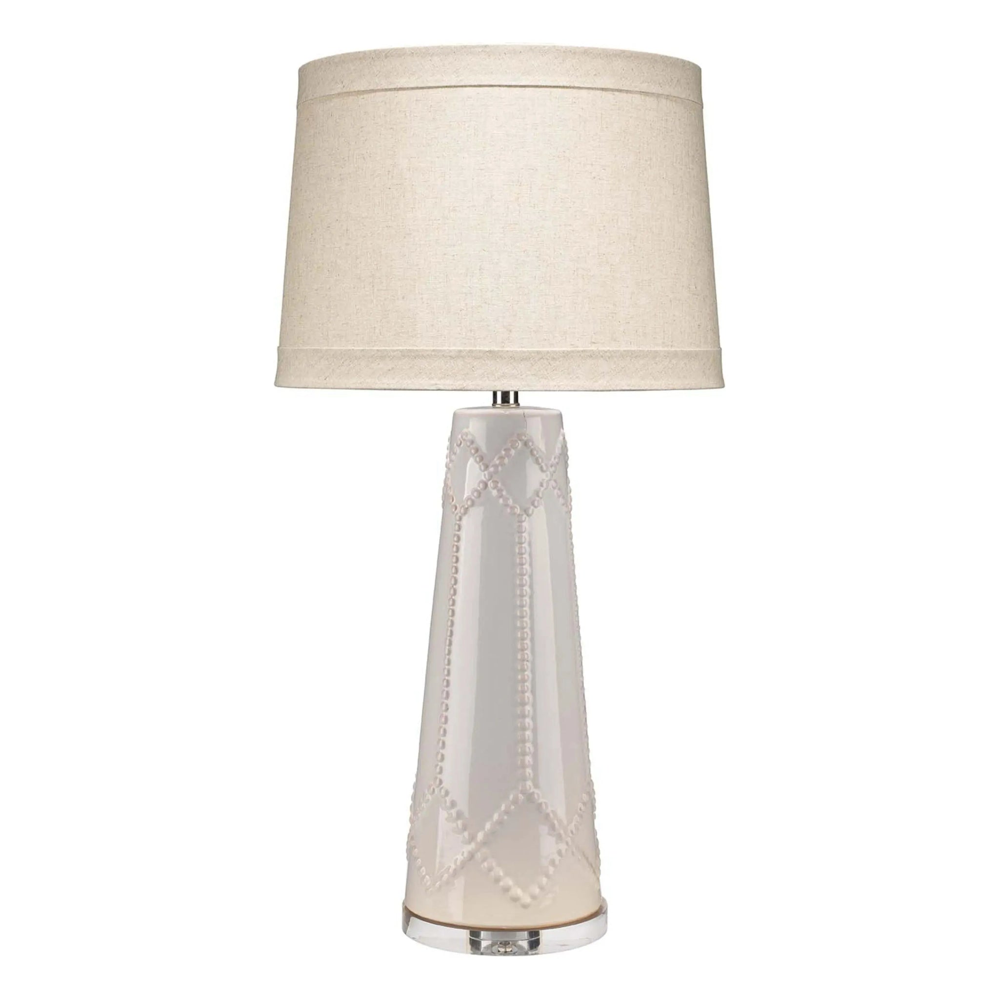The hobnail texture and pattern of this table lamp gives it vintage good looks. Crafted by artisans of ceramic and finished with subtle changes in color, it comes topped with a linen shade for a soft contrast and refined glow.