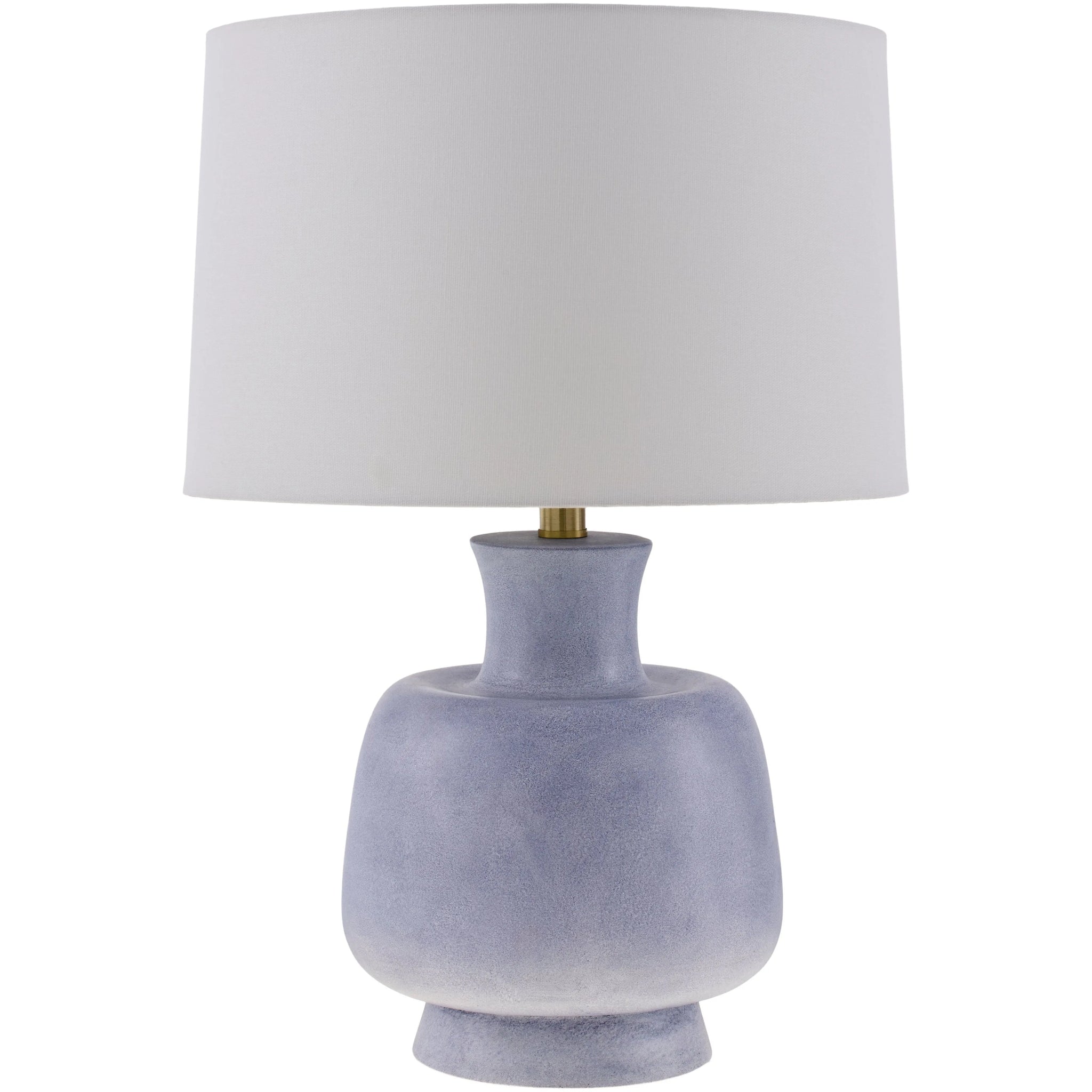 Finish: Body: Blue; Shade: White; Finial: Metallic - Bronze; Harp: Metallic - Brass; Cord: Translucent
