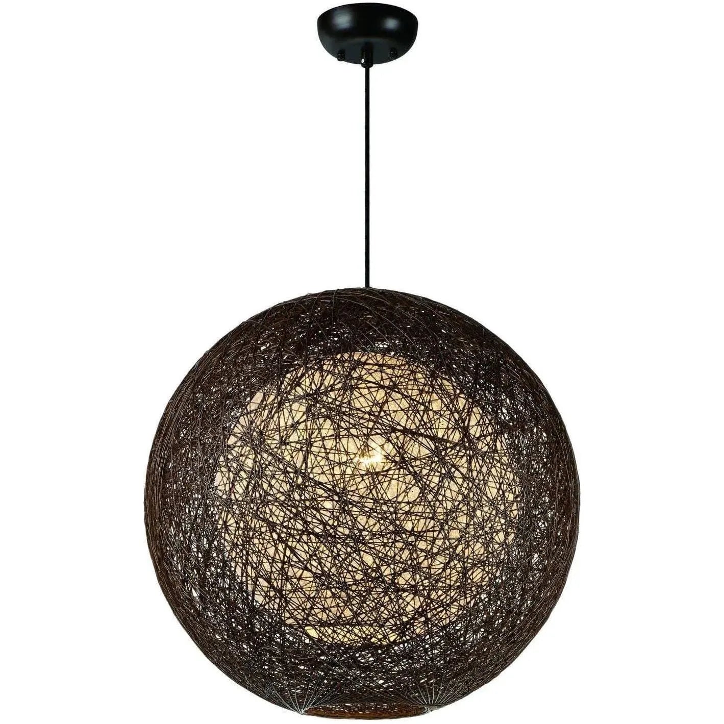 Hand-wrapped open-weave construction creates a warm, dappled glow that sculpts light and shadow — ideal as a focal pendant over seating, dining, or covered outdoor rooms. The oval silhouette and disciplined black canopy read contemporary while the tactile, woven surface introduces natural character to minimalist or transitional schemes.