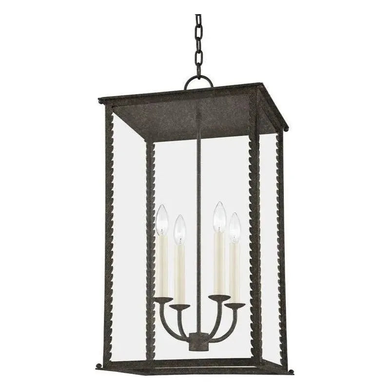 Designed to anchor exterior entries with refined presence. The Zuma Exterior Lantern by Troy Lighting pairs a classic lantern silhouette with crisp, contemporary detailing—scalloped, rope-like vertical stiles, clear glass panels and a restrained rectangular canopy—creating a striking yet understated focal point for porches, covered patios, and porte-cochères.