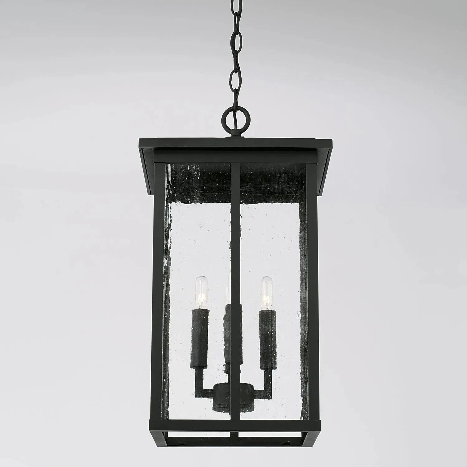 Illuminate your exterior with a lantern that combines clean lines, framed edges, and a modern silhouette. The Barrett Outdoor Hanging Lantern from the Barrett Collection delivers graphic appeal without overpowering your home’s facade. Its textured water glass diffuses light to cast a warm, inviting glow across your porch or patio.