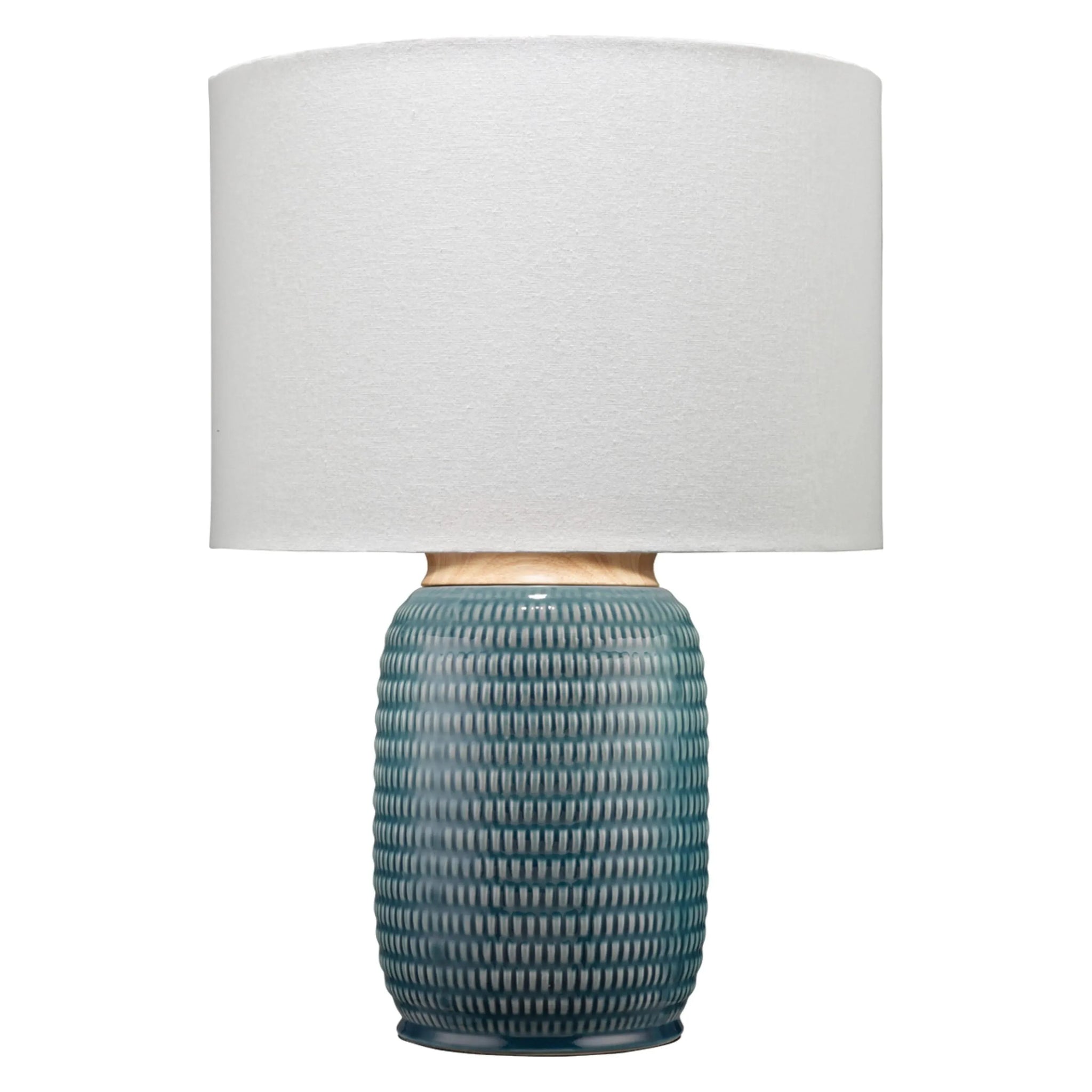 Add a touch of textural sophistication to any room with this table lamp. Beautifully crafted of ceramic, its base features a patterned surface and rich vibrant reactive glaze. Balanced with a linen shade that filters light beautifully in any room.