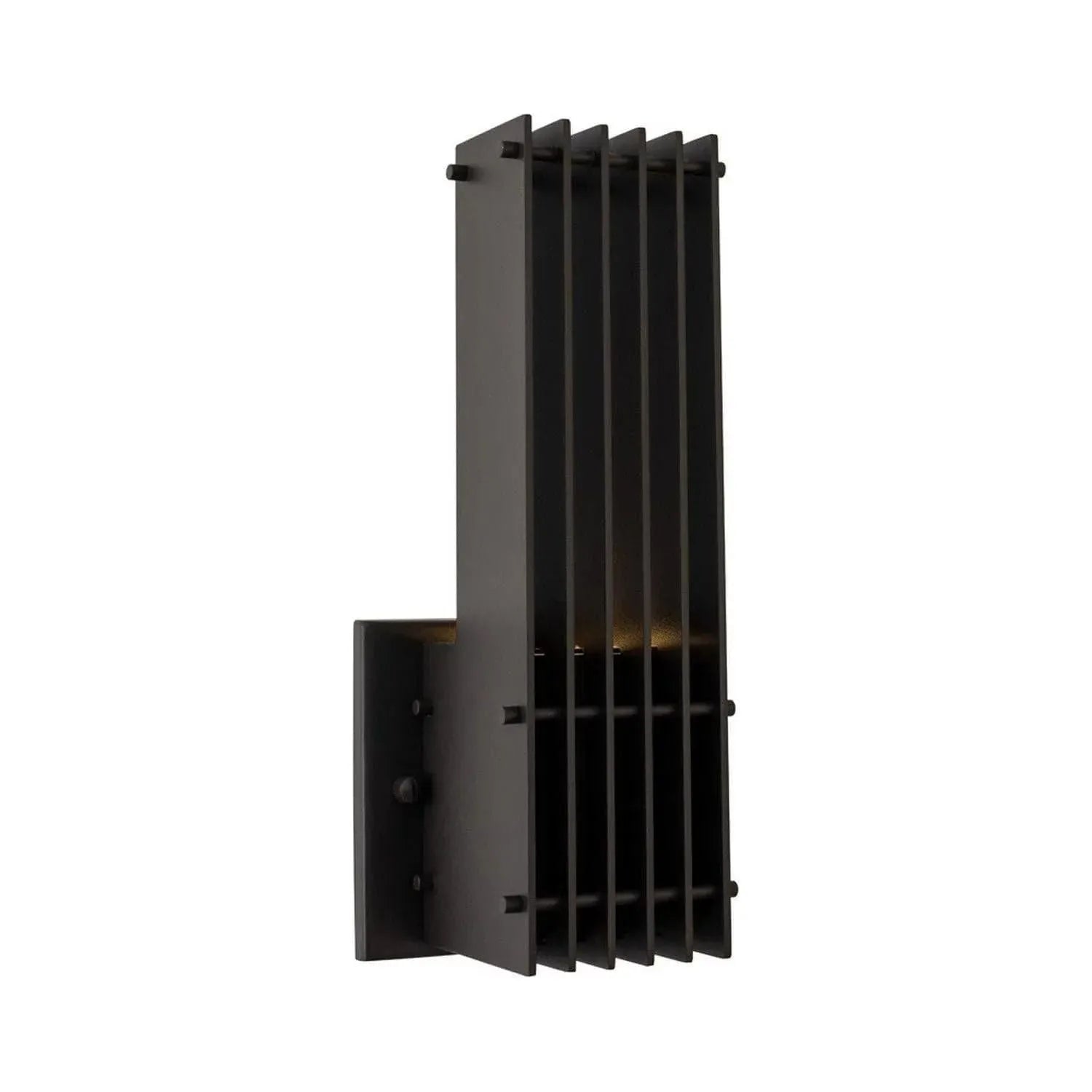 Inspired by industrial cooling fins, the Matte Black (MB) Drew Outdoor Collection radiates light from driverless LEDs. An unassuming frame offers stark contrast from day to night, and the single light version can be oriented for Dark Sky applications.