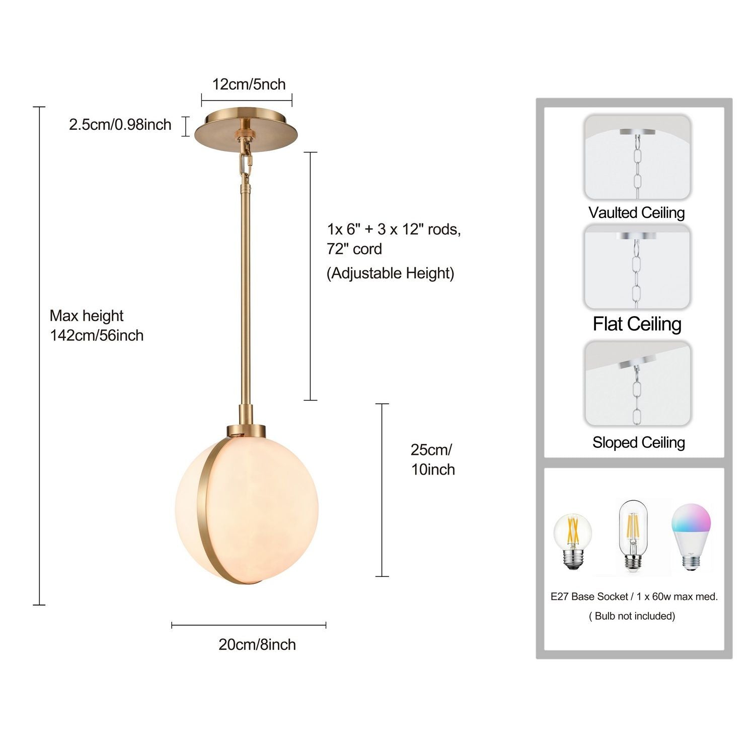 Bulbs: 1 x A19 E26 60W, Dimmable