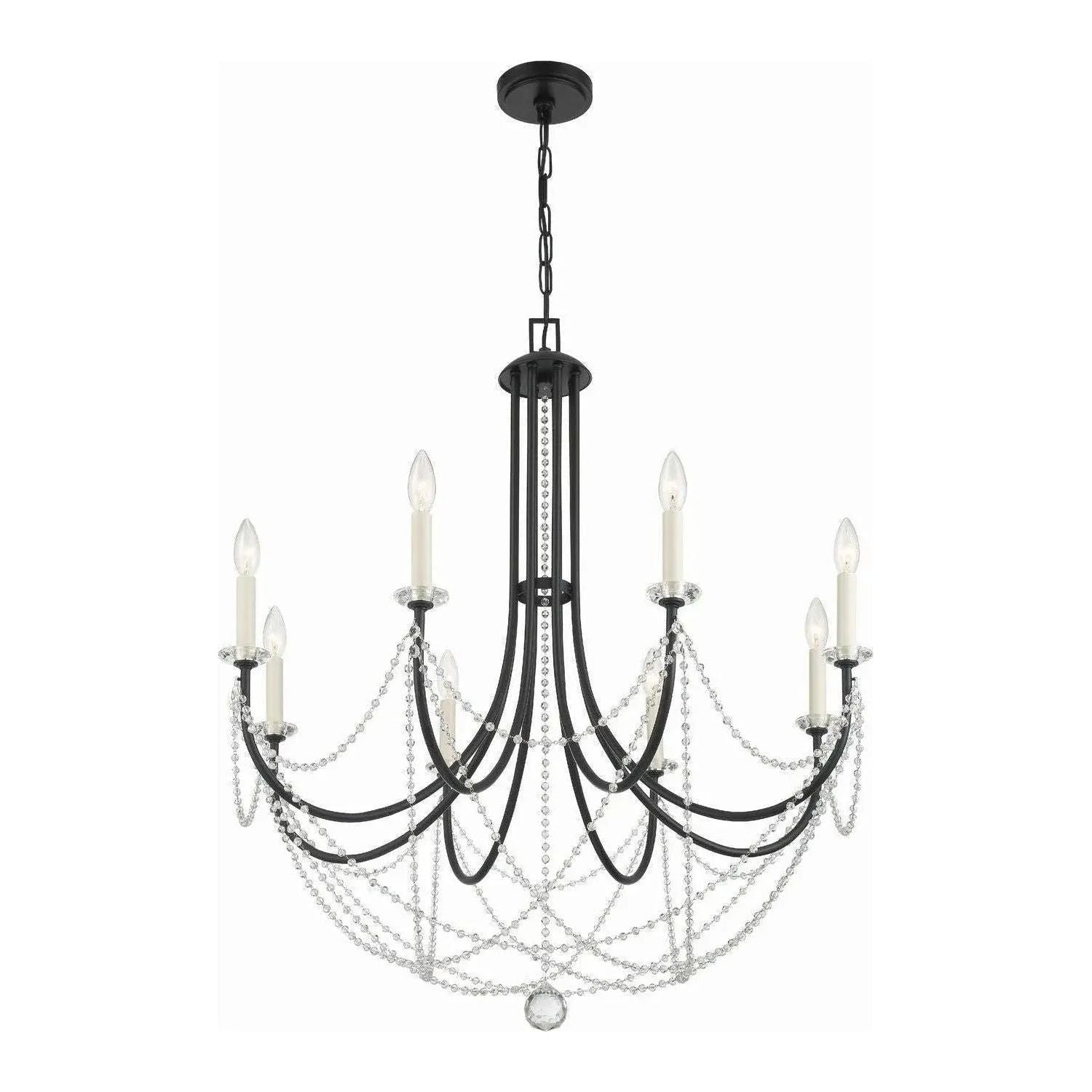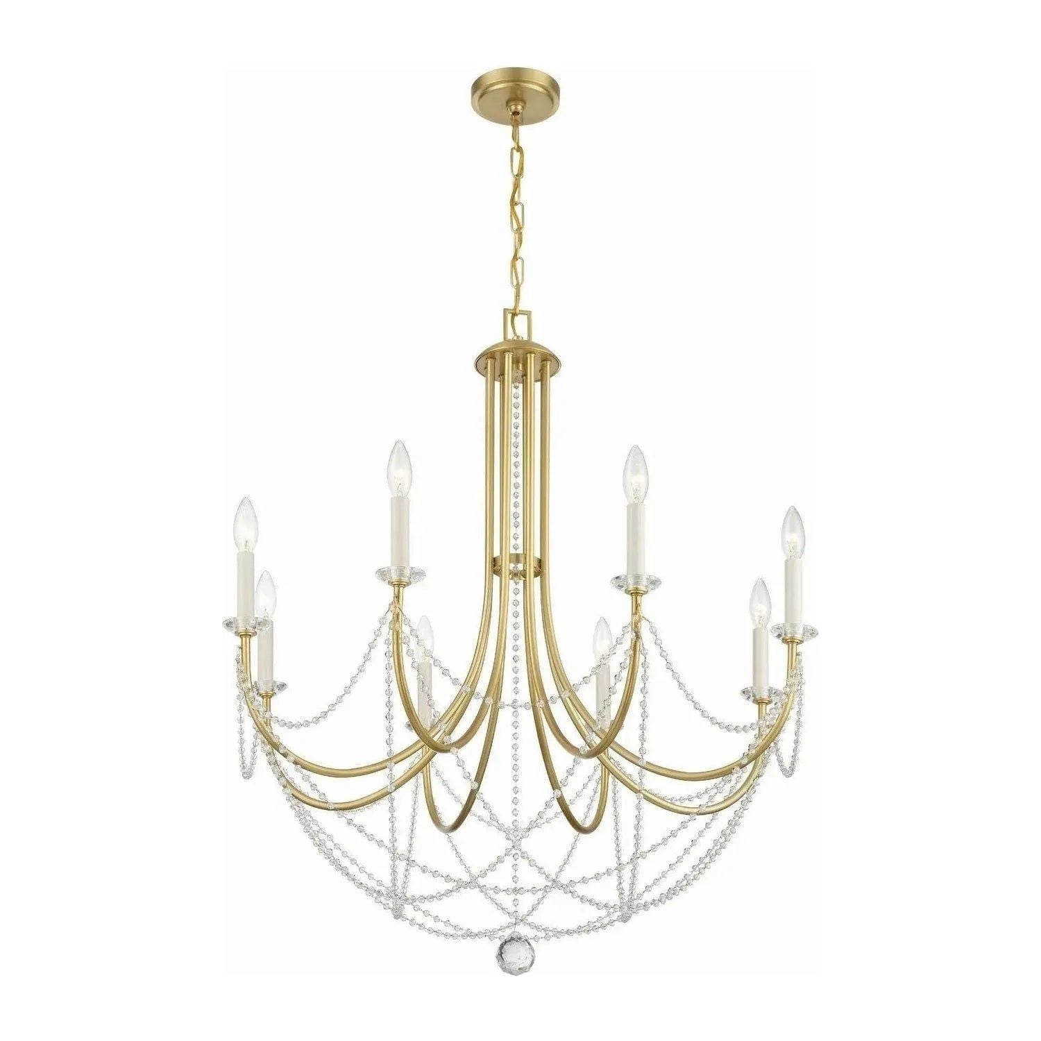 The Delilah chandelier makes a grand statement to your interior. Its swooping metal frame gracefully hangs crisscrossed cascading crystal beads from each metal arm. This modern-style crystal chandelier adds a rich and formal look to a room, making it the ultimate final touch.