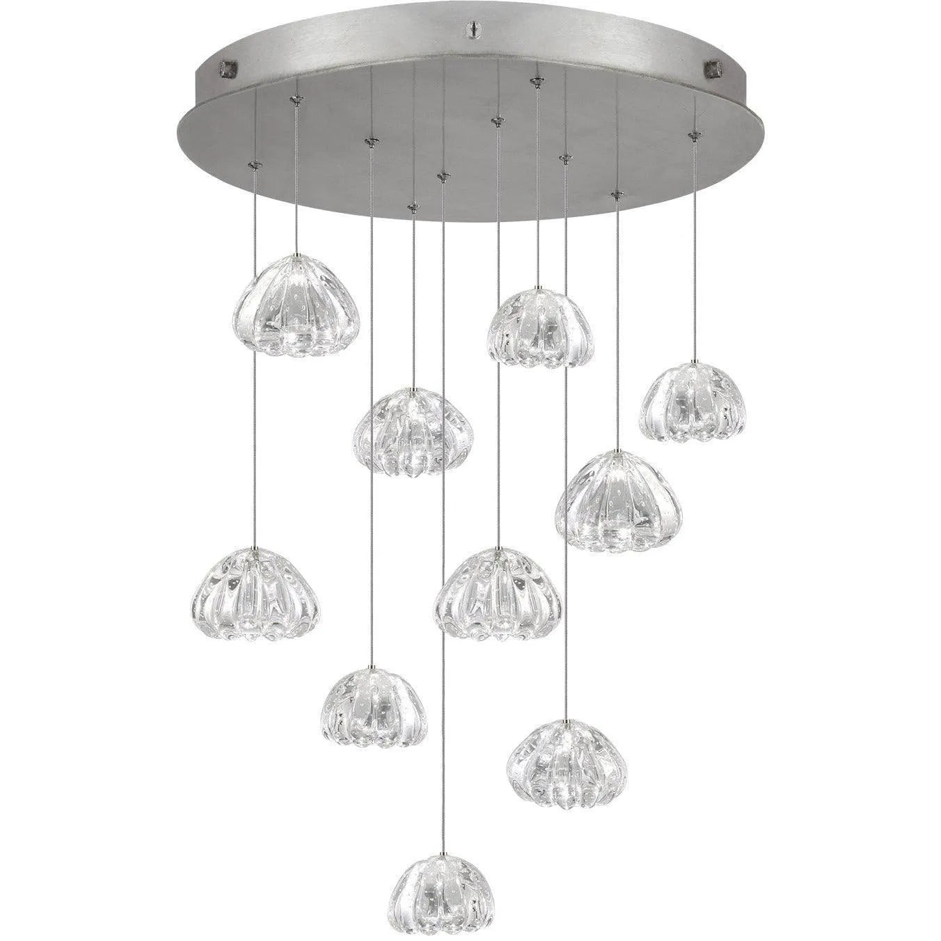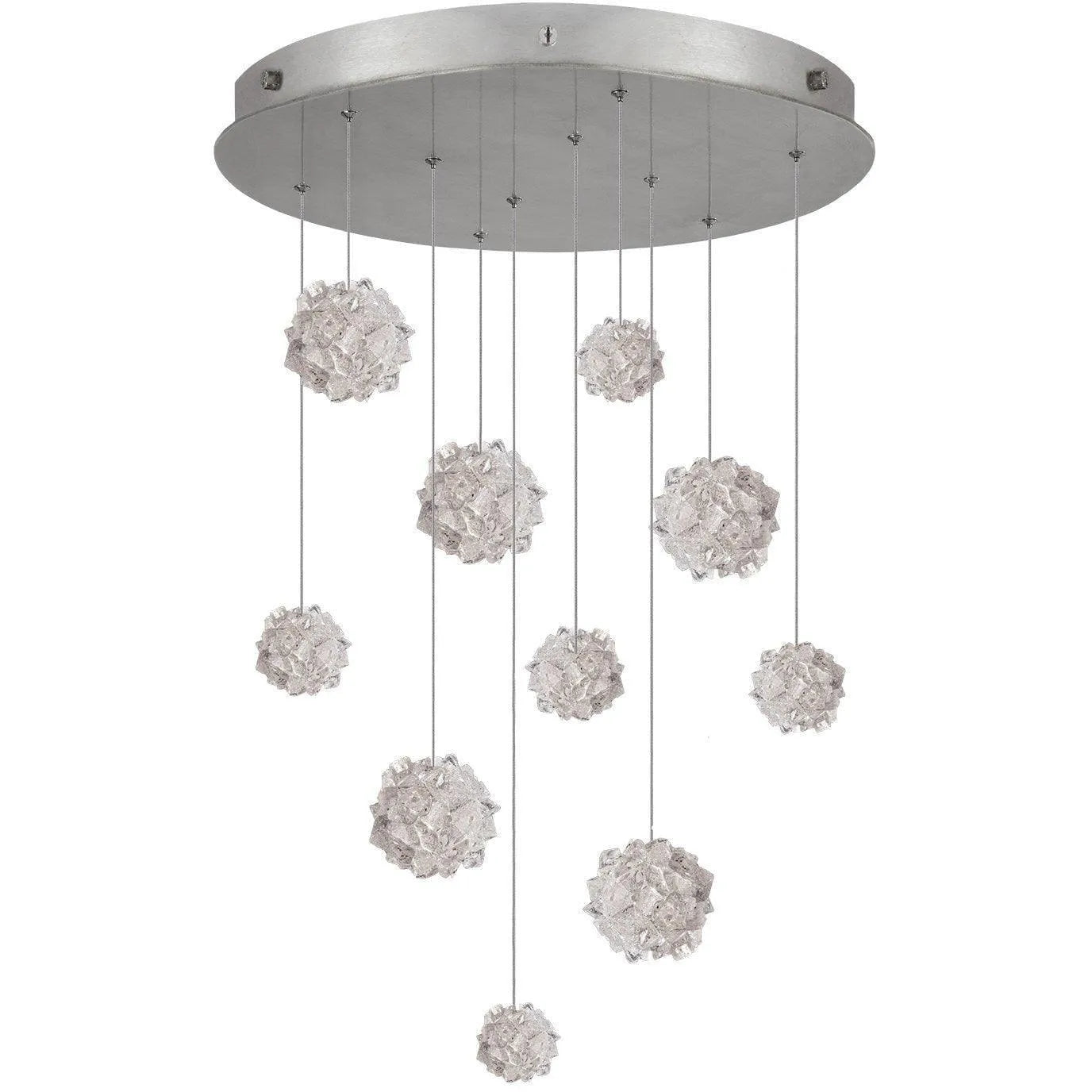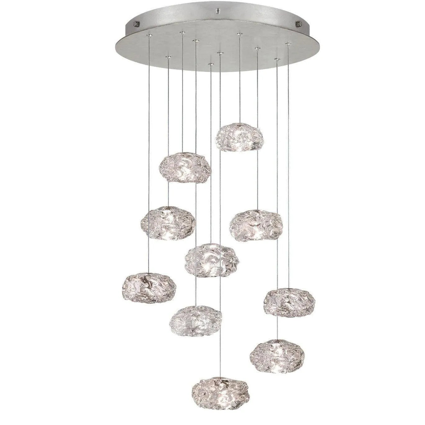 Natural Inspirations 22-Inch Ten Light Pendant reimagines organic form as refined illumination — a sculptural cluster of ten textured glass "crystal" pods suspended from a low-profile round canopy. Designed by Fine Art Handcrafted Lighting, it combines artisanal glasswork with precision metal hardware for a dramatic focal point in contemporary interiors.