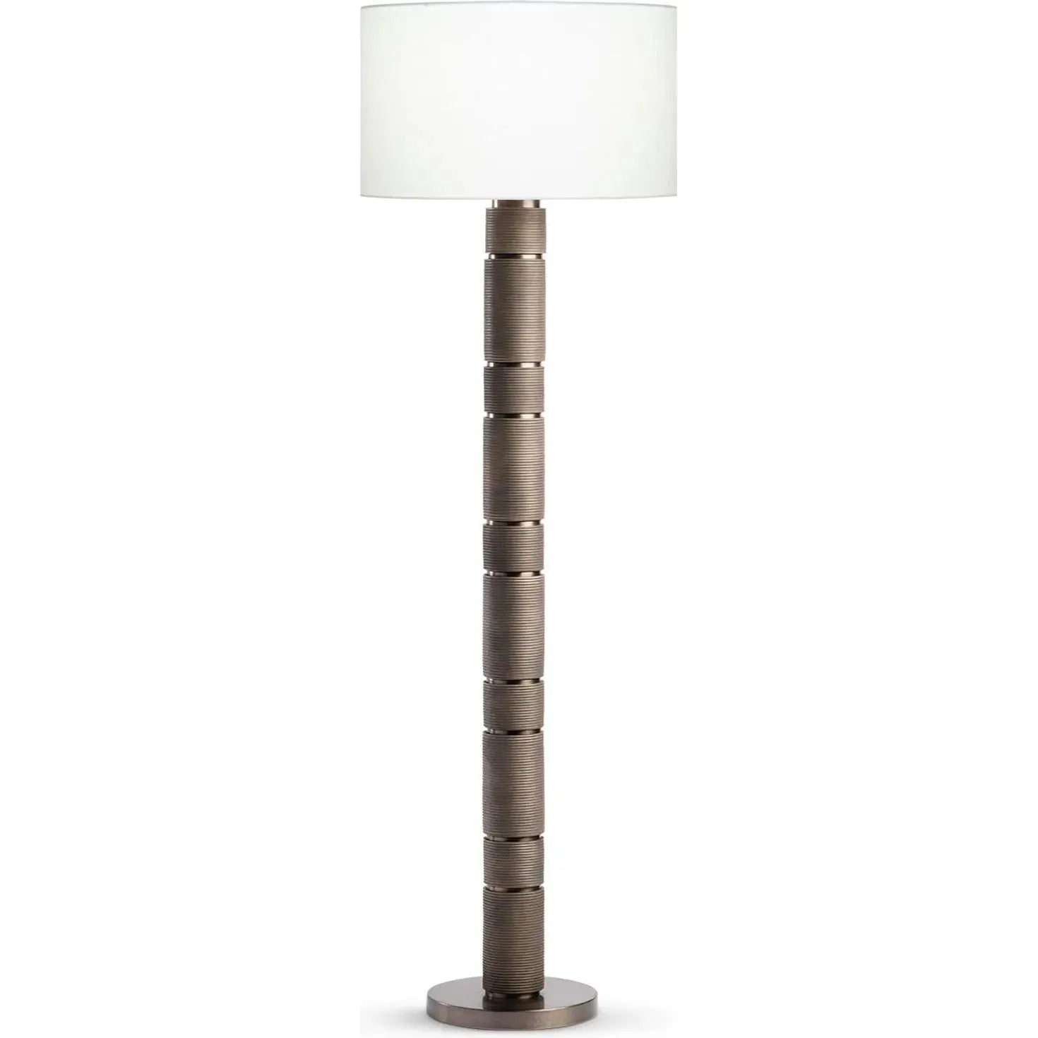 Crafted from poly-resin, the Melvin Floor Lamp features a classic silhouette with a round base and a fine ribbed body in a bronze finish. A fabric drum linen shade sits up top to complete the look.