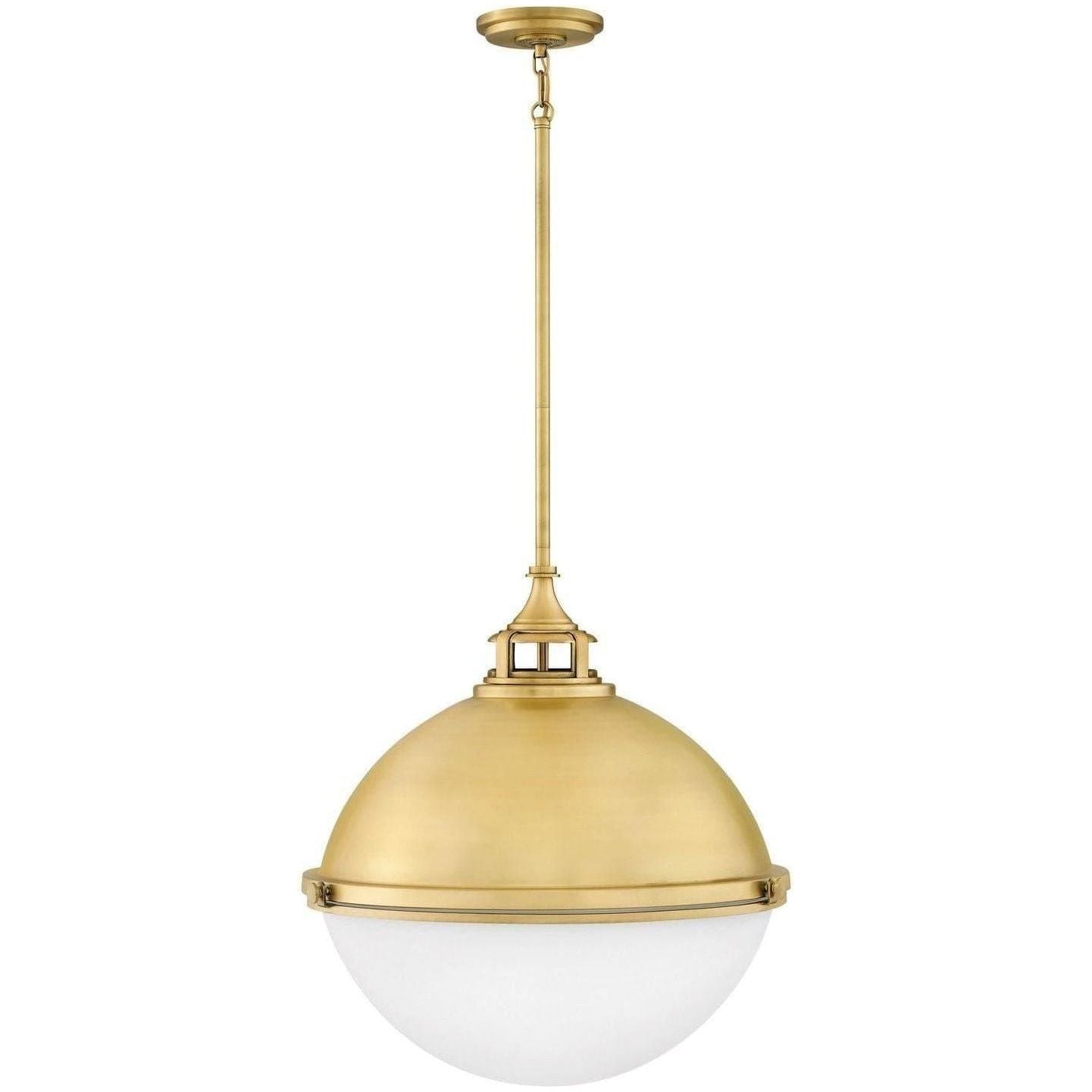 Fletcher 22-Inch Pendant by Hinkley Lighting reinterprets classic globe lighting with a contemporary, architectural presence. The 22" spherical silhouette pairs a textured metal upper dome with a clean opal glass lower globe, creating a balanced composition that reads both modern and timeless.