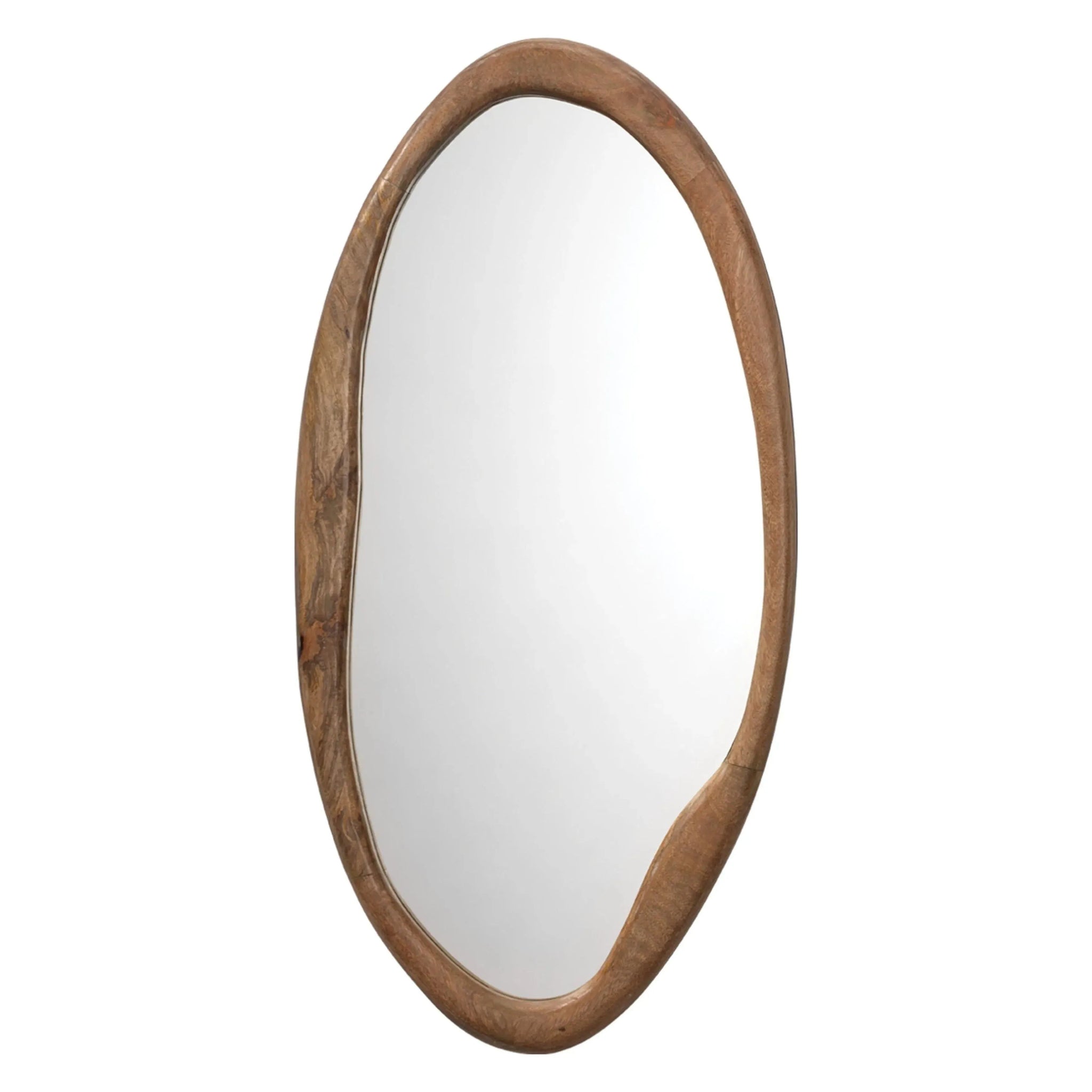 An irregular organic form distinguishes this handmade oval wall mirror. The organic, natural silhouette is paired with an unrefined finish, creating a versatile accent that will lighten and add texture to any room in your home.