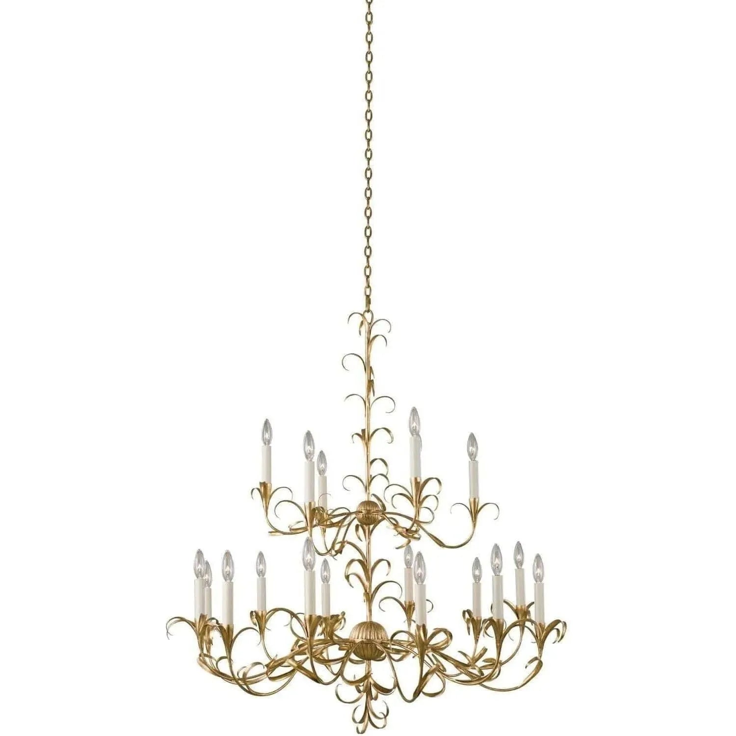 Organically inspired modern classic featuring a warm, hand painted Oxidized Gold Leaf finish and simple off-white candle sleeves.